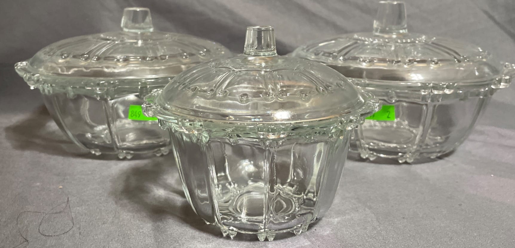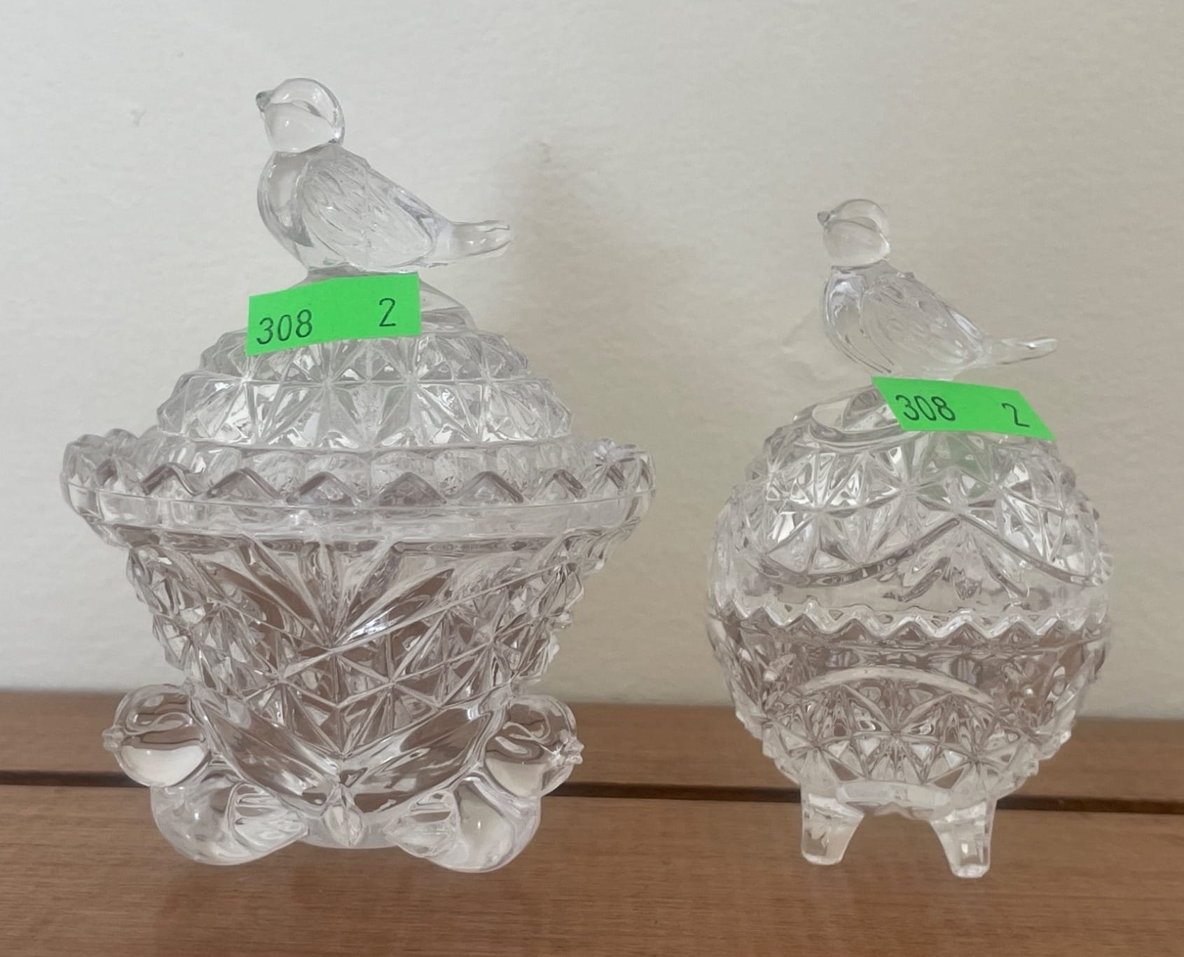 308 Crystal Lidded Trinket Dishes with Bird Finials 3”-4”