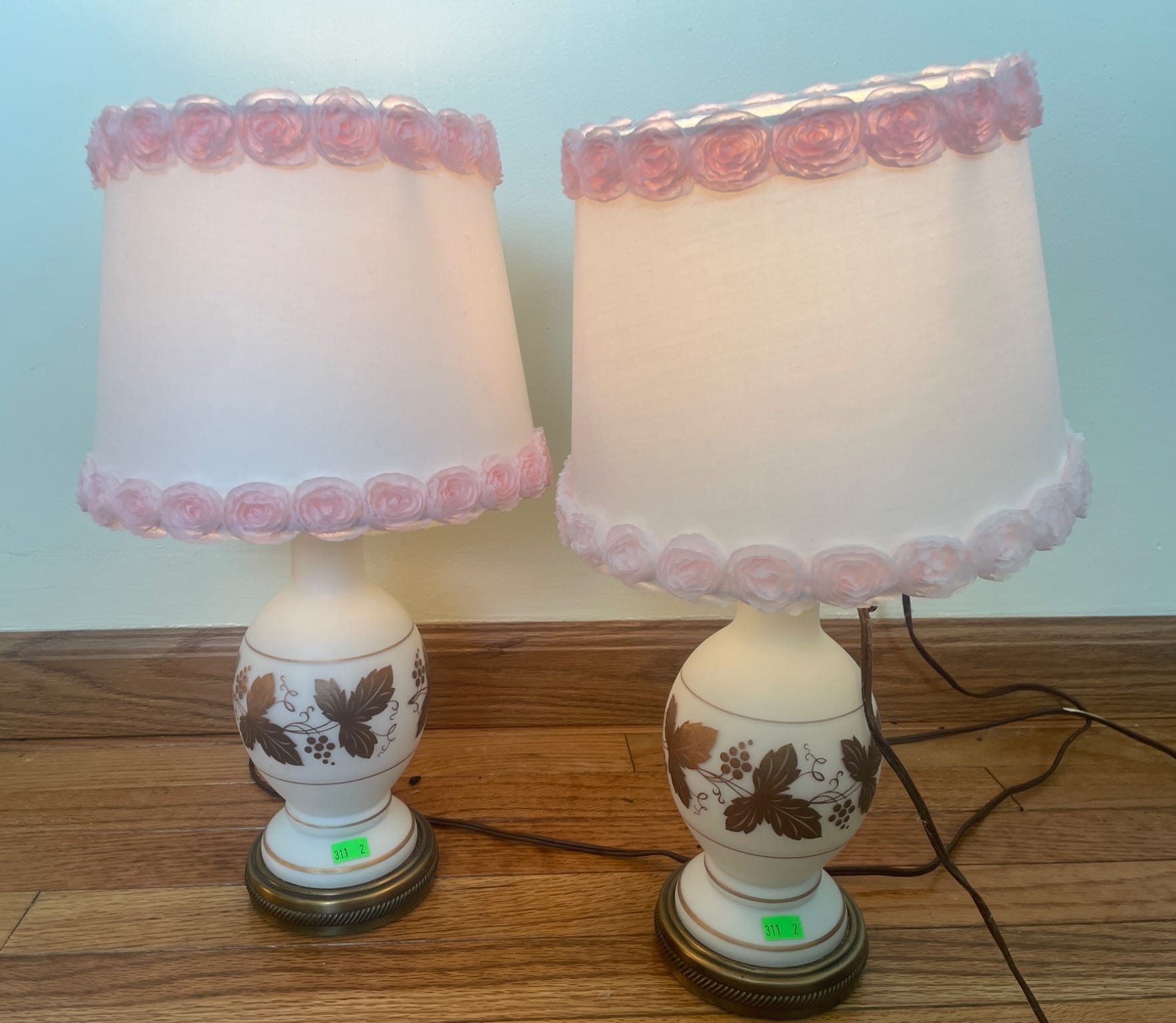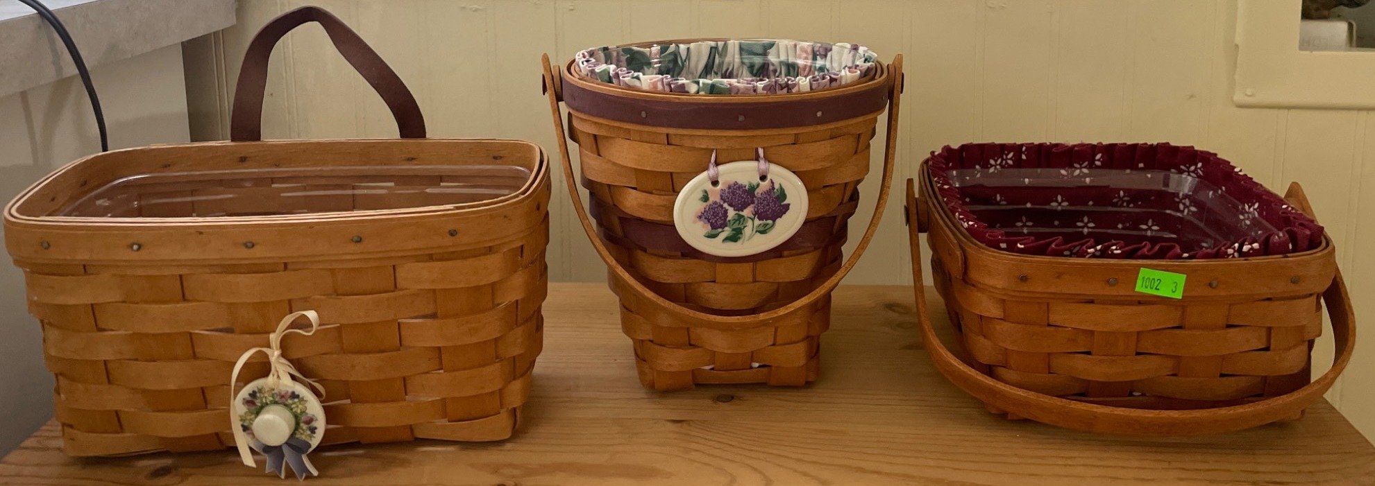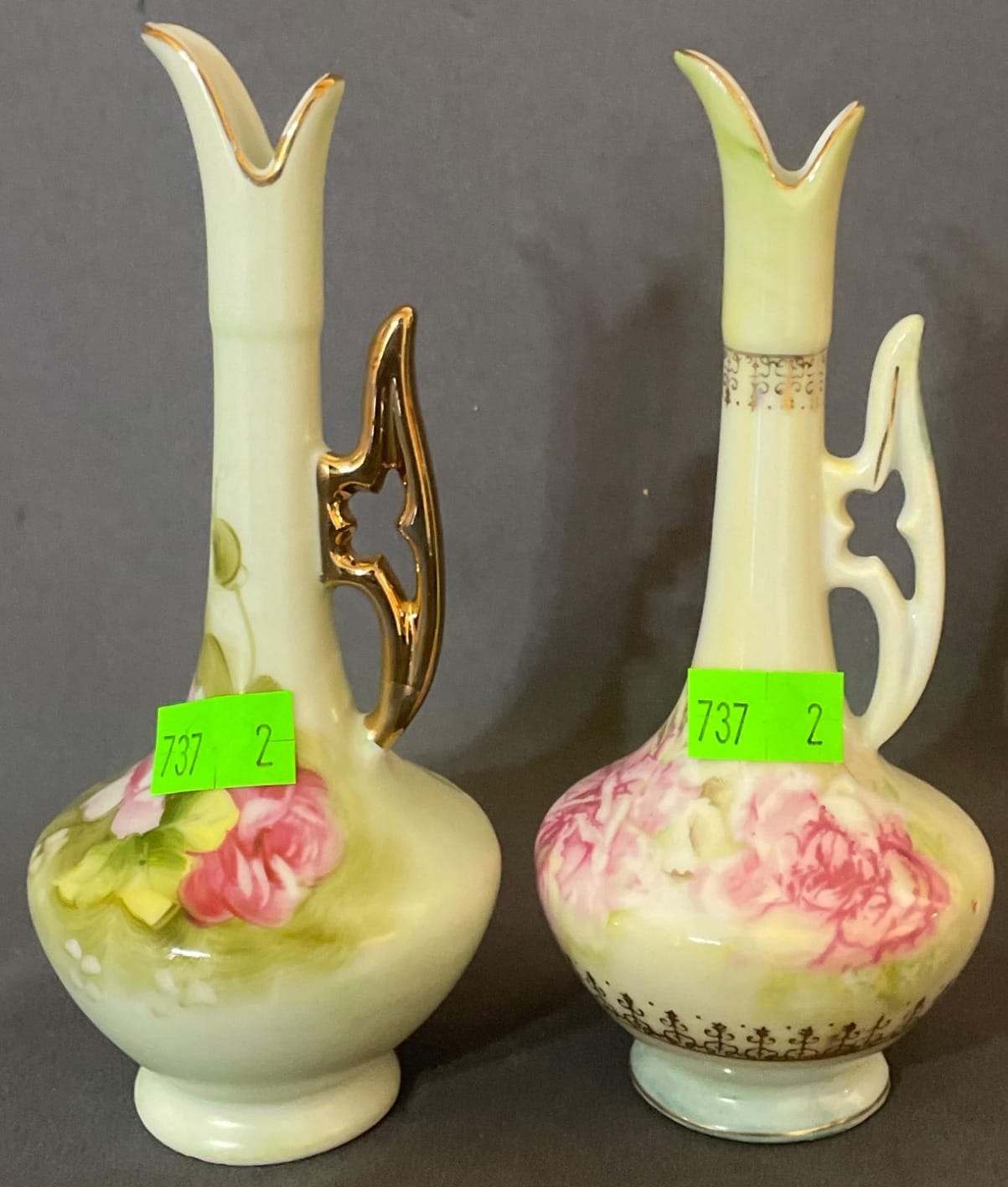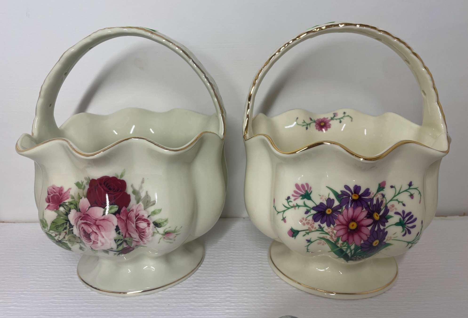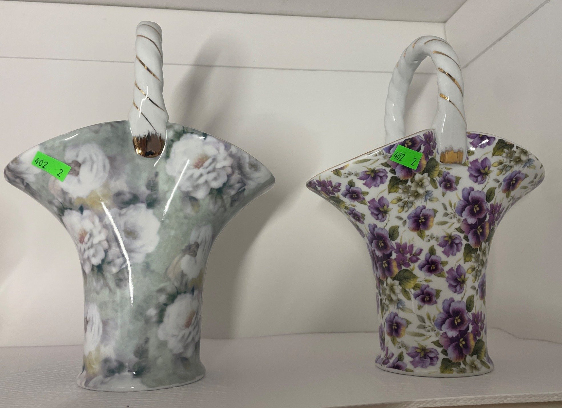 412 Porcelain Floral Basket Vases with Gold-Tone Accents 6”x8”