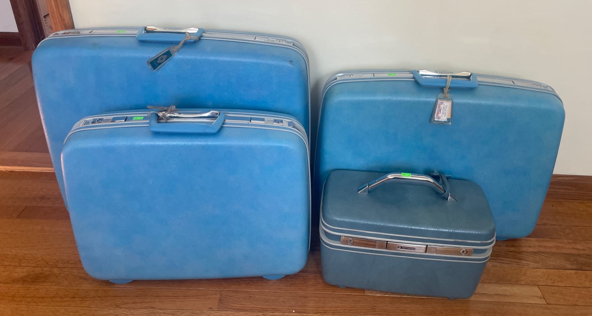 313 Samsonite Blue Hard-Sided Luggage with Mirror and Storage Compartments 24”x7”x20”, 22”x6”x16”, 20”x5.5”x14”, 14”x8”x9”