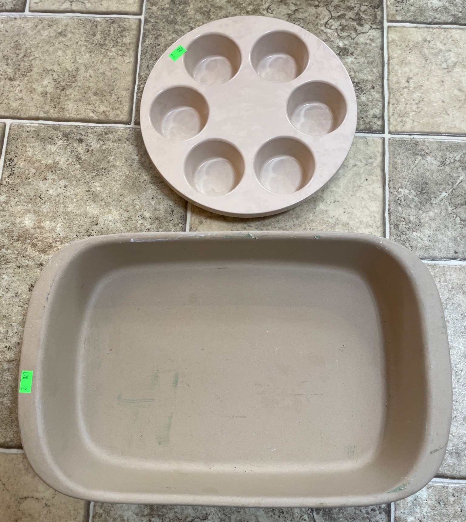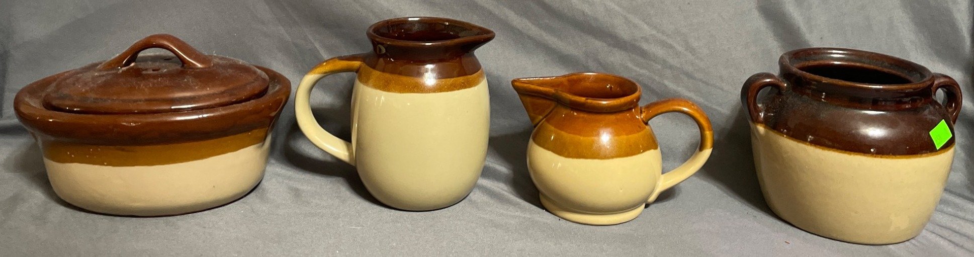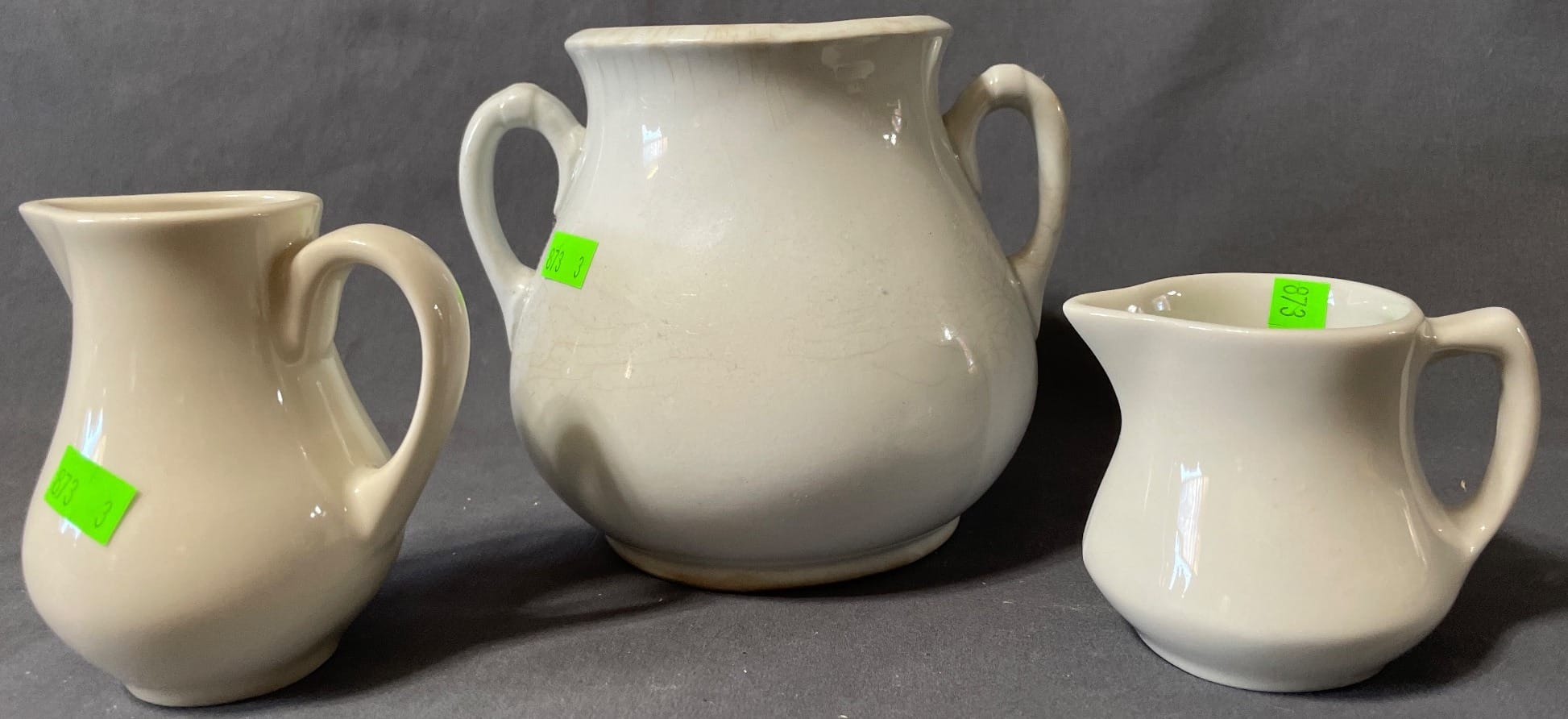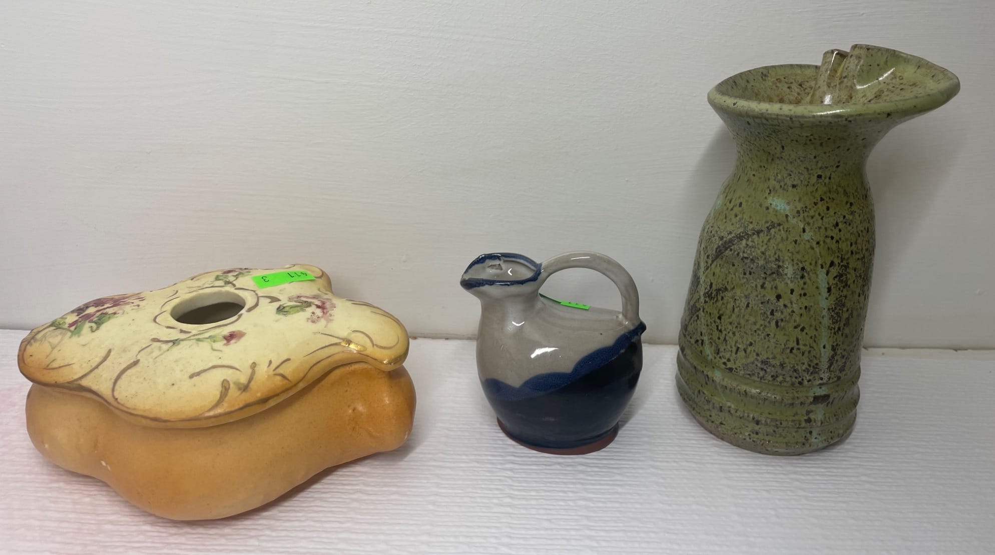 411 3 Stoneware Items Inc. Vase, Candleholder, and Small Pitcher 5.5”-3”