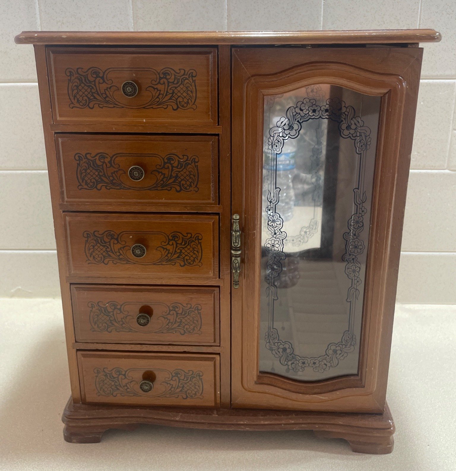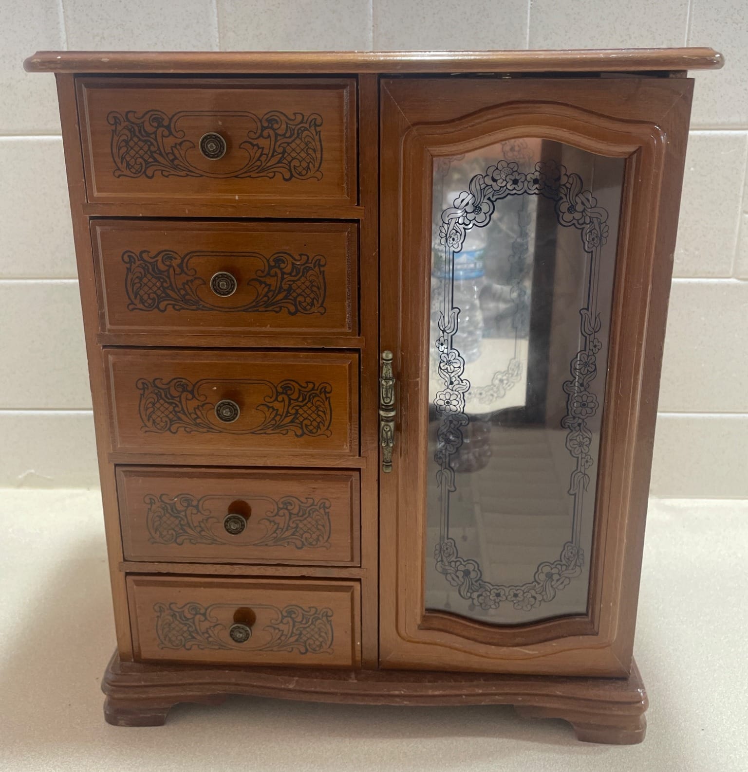 414 Jewelry Box with 5 Drawers and Glass Door 12”x6”x14”