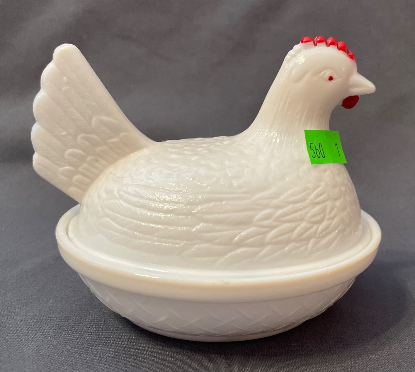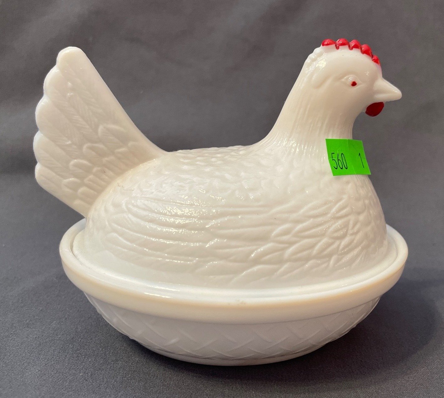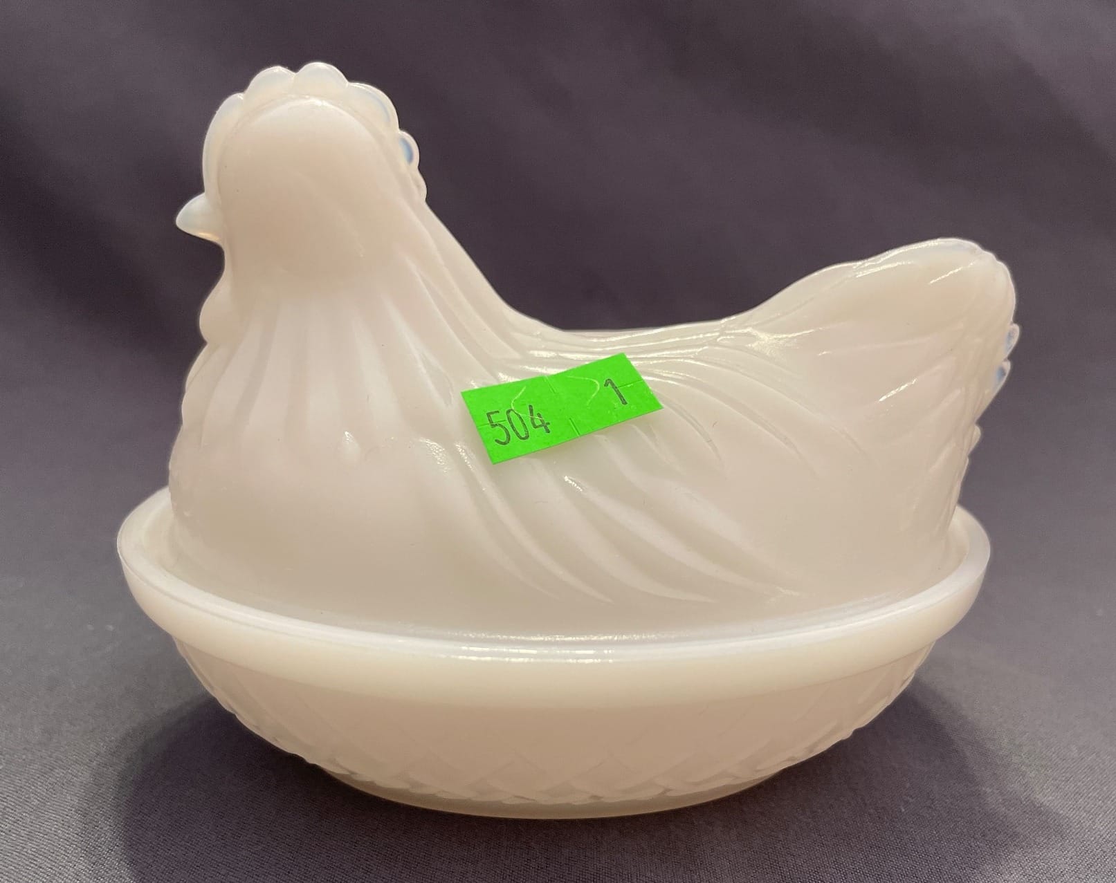 504 Anchor Hocking Milk Glass Hen-On-Nest Covered Dish, 3”Hx4.5”L