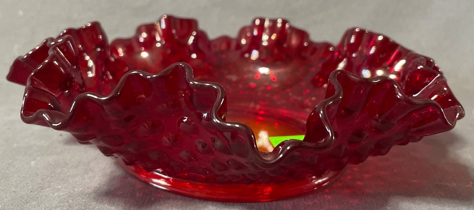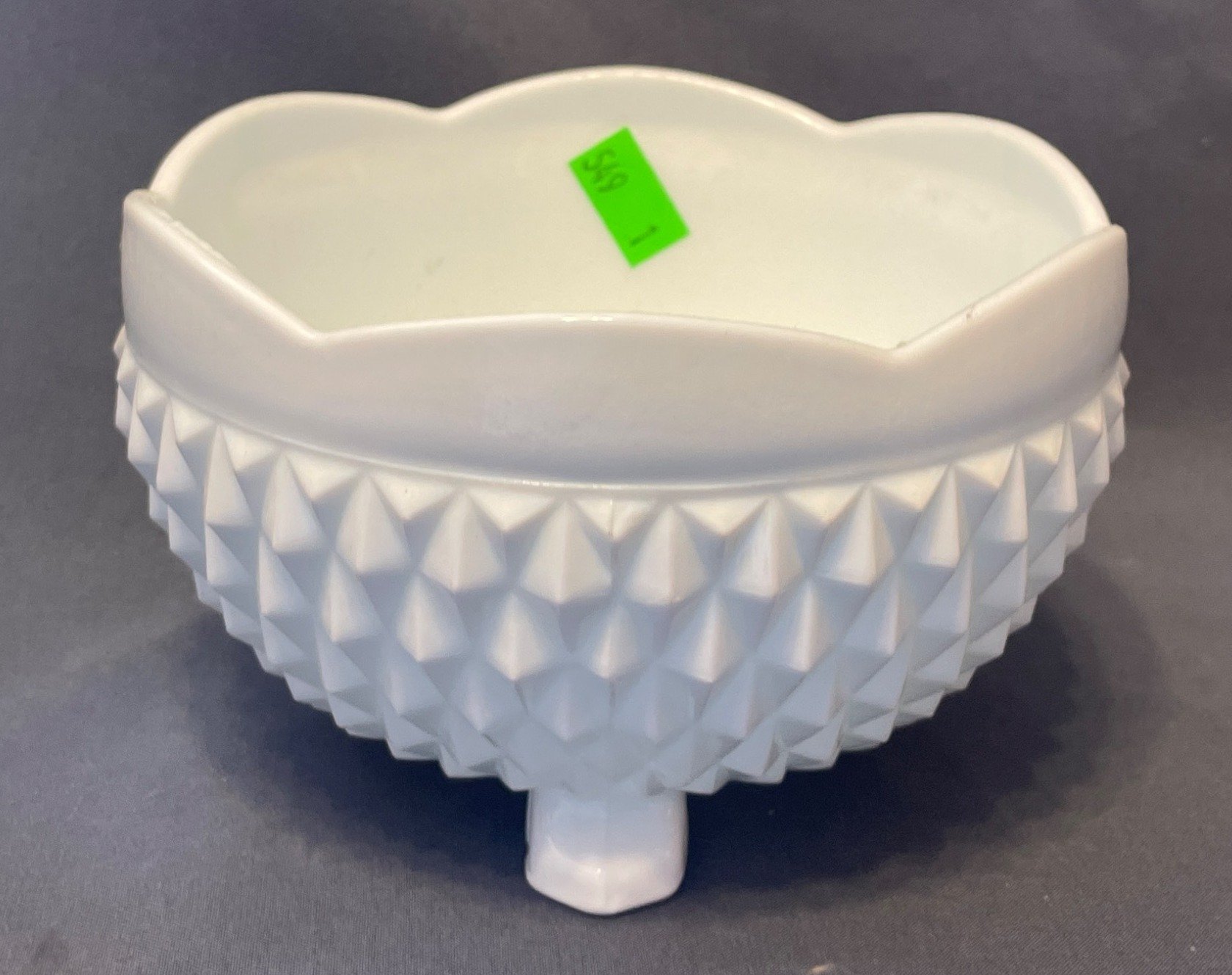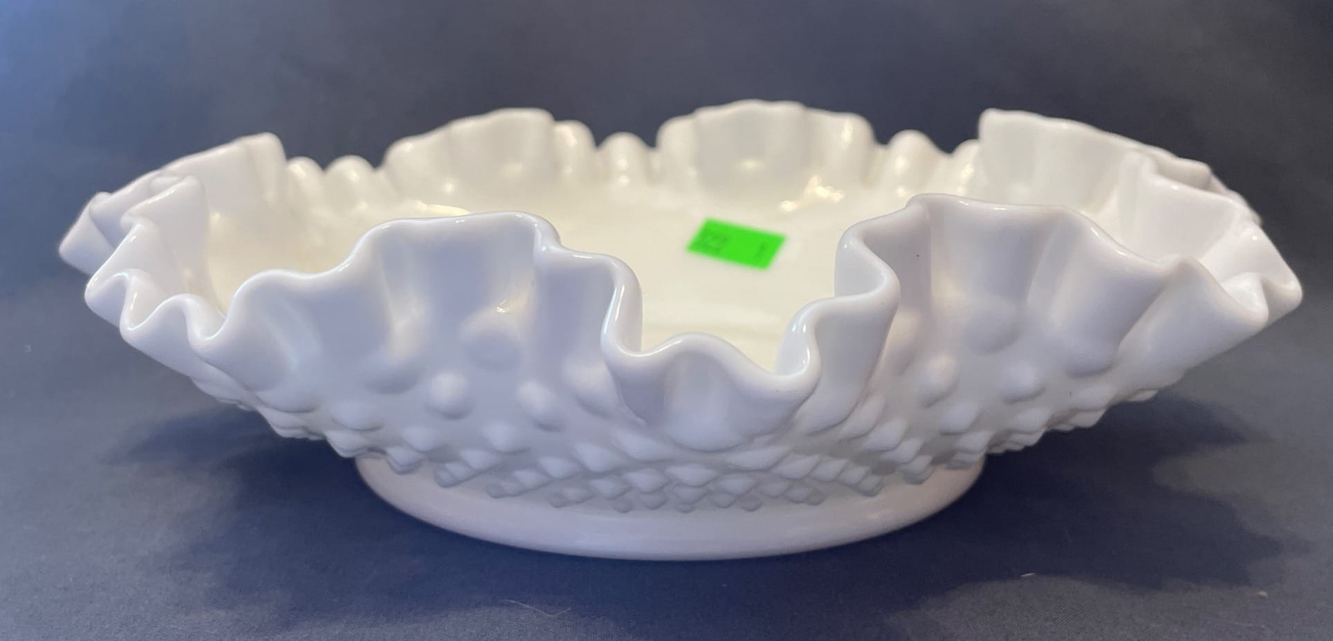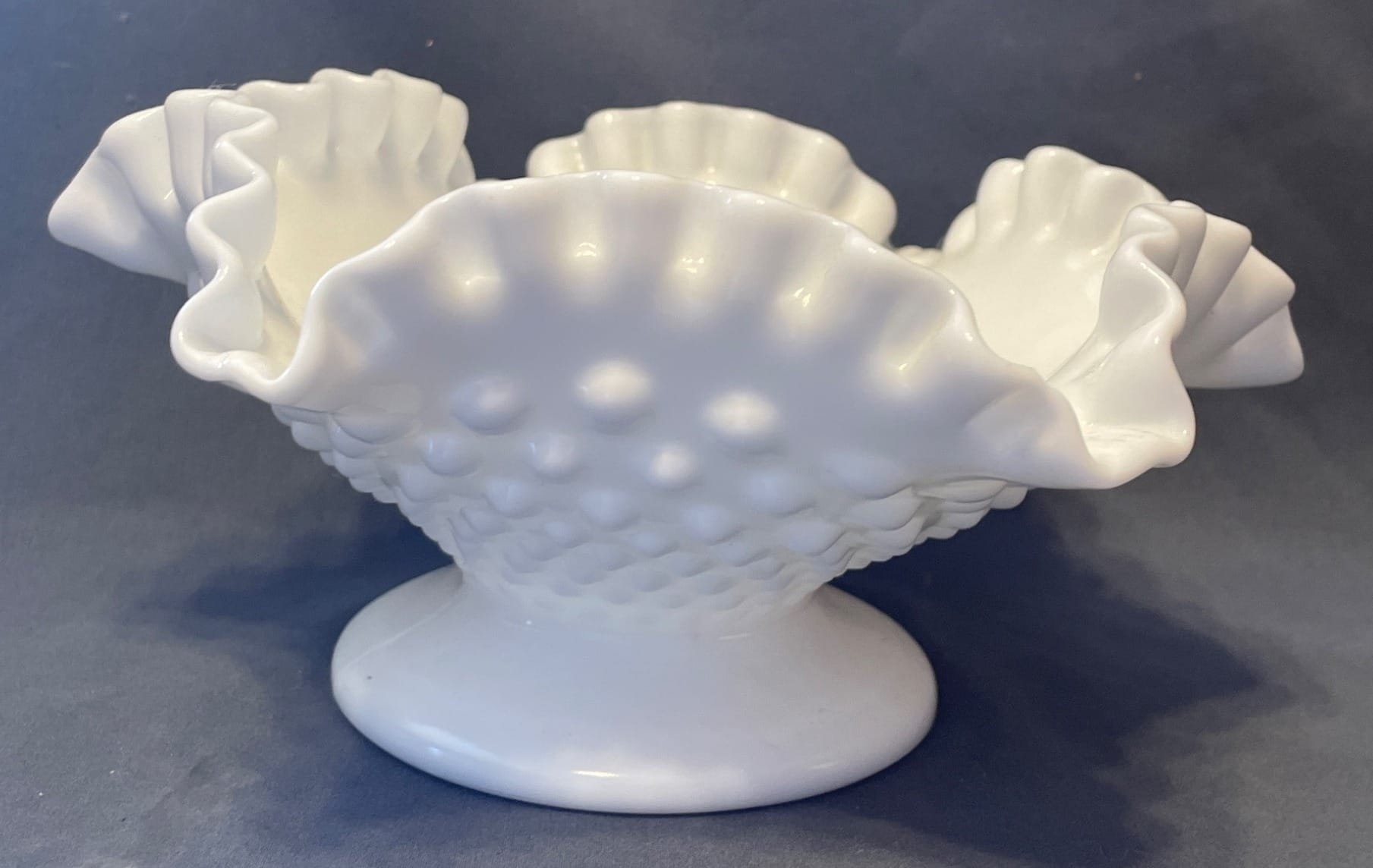 506 Fenton Hobnail Milk Glass Ruffled Edge Bowl, 4×6.5?