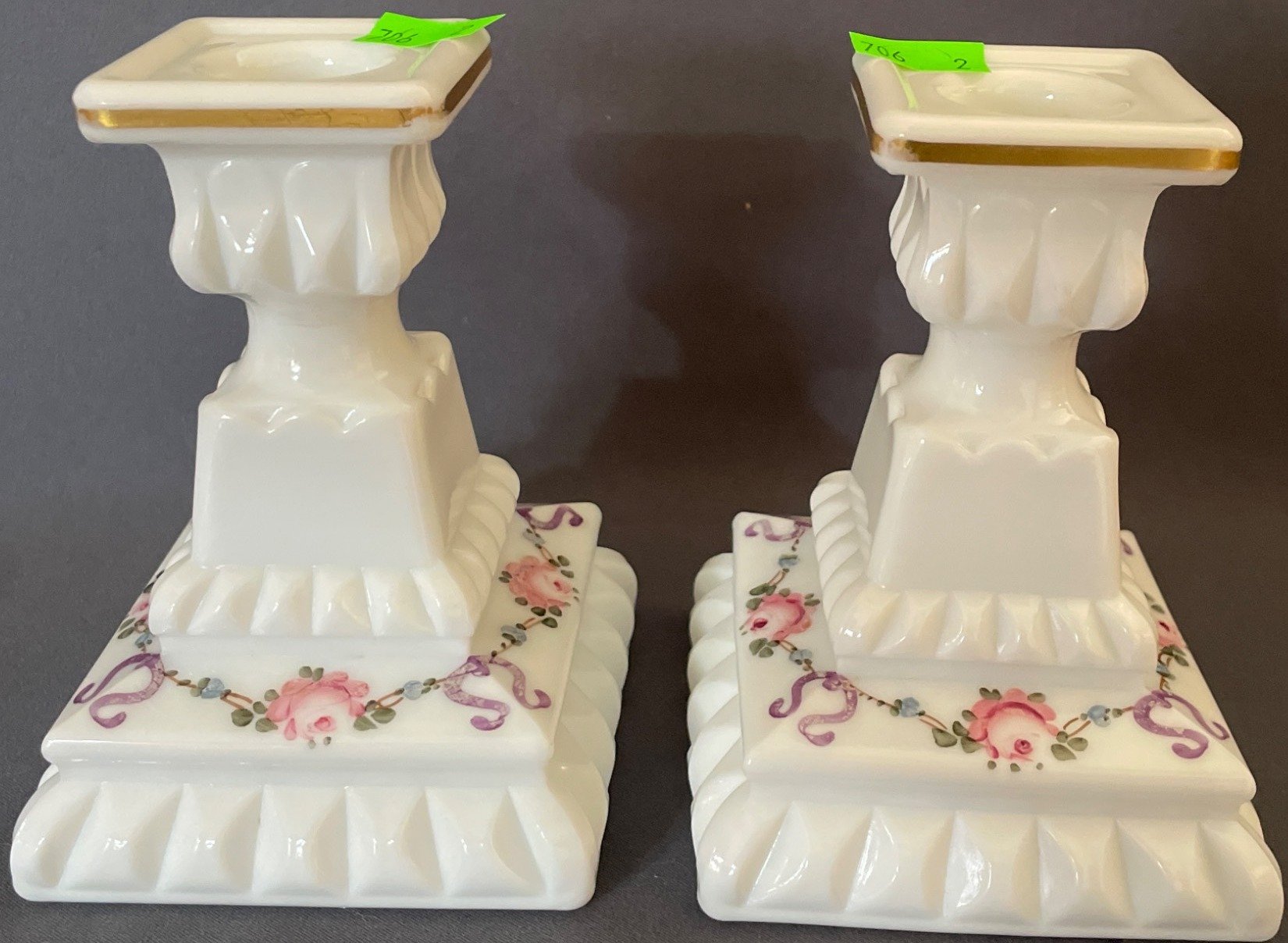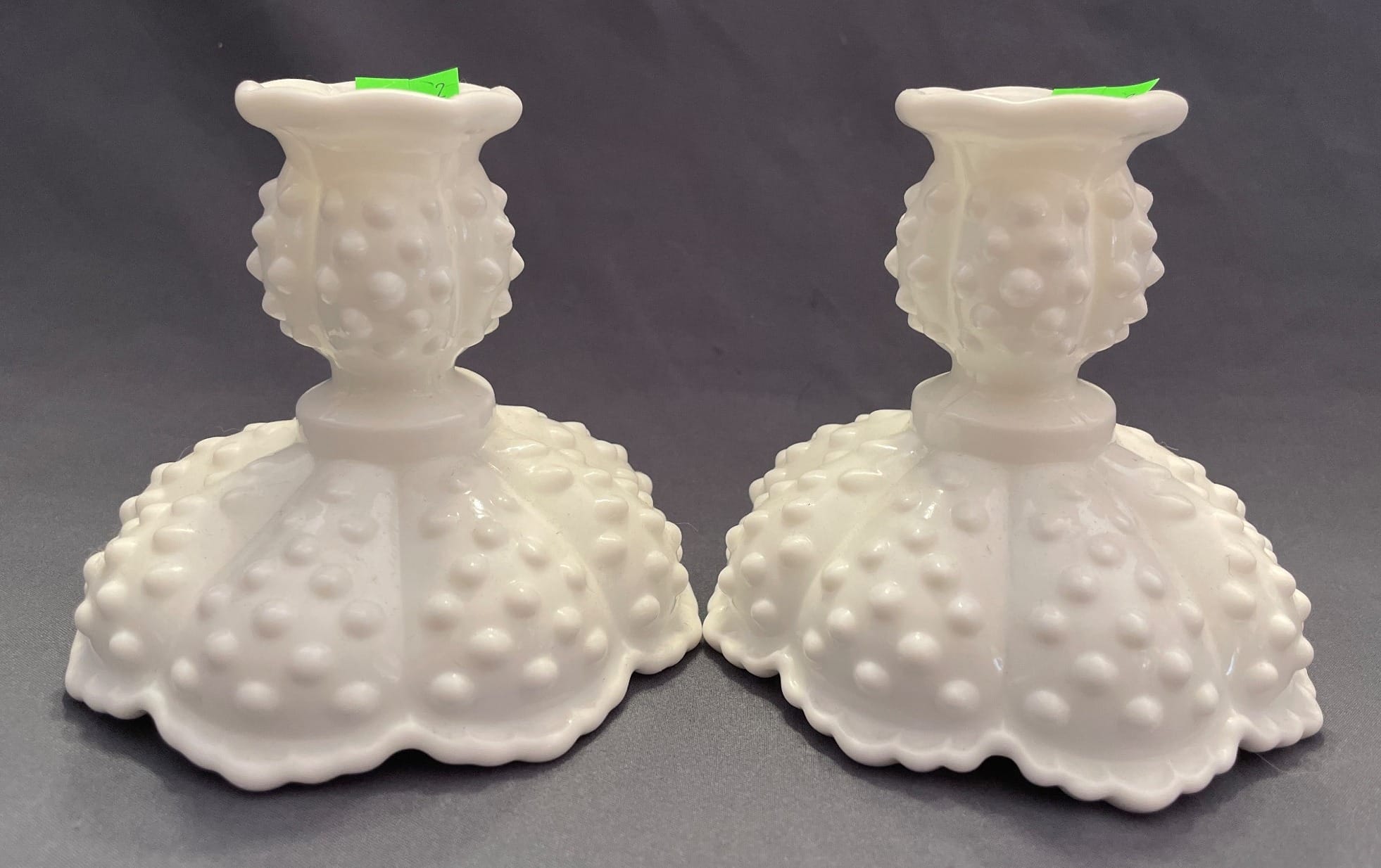 508 2 Fenton Hobnail Milk Glass Candleholders, 5”H