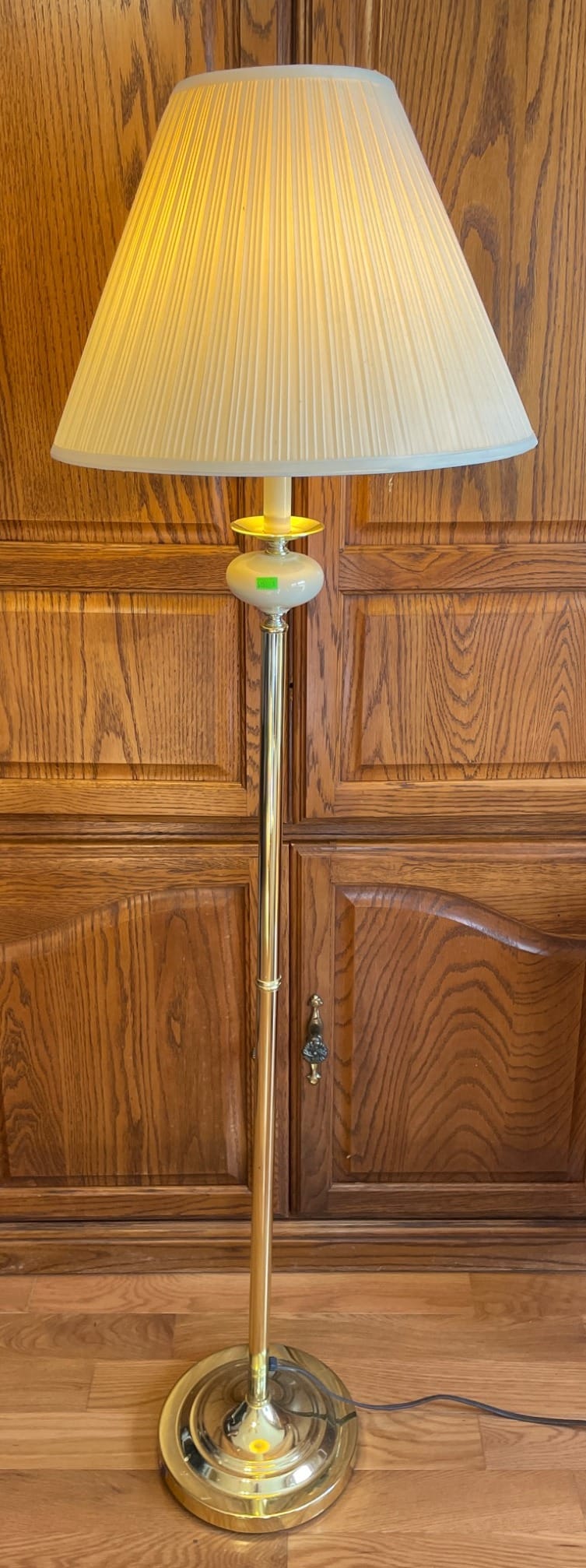 515 Brass-Tone Floor Lamp with Pleated Shade and Porcelain Accents 62”