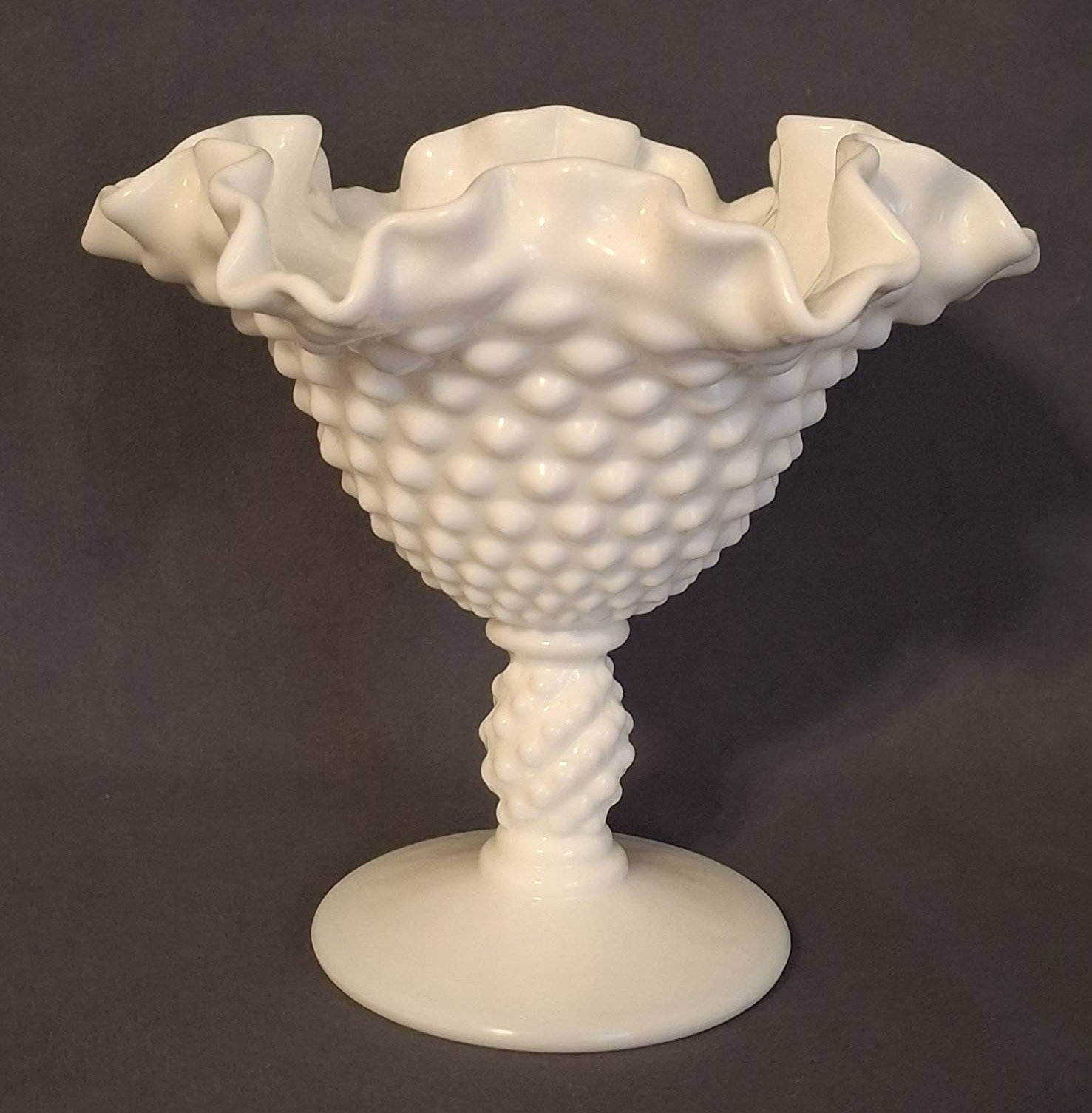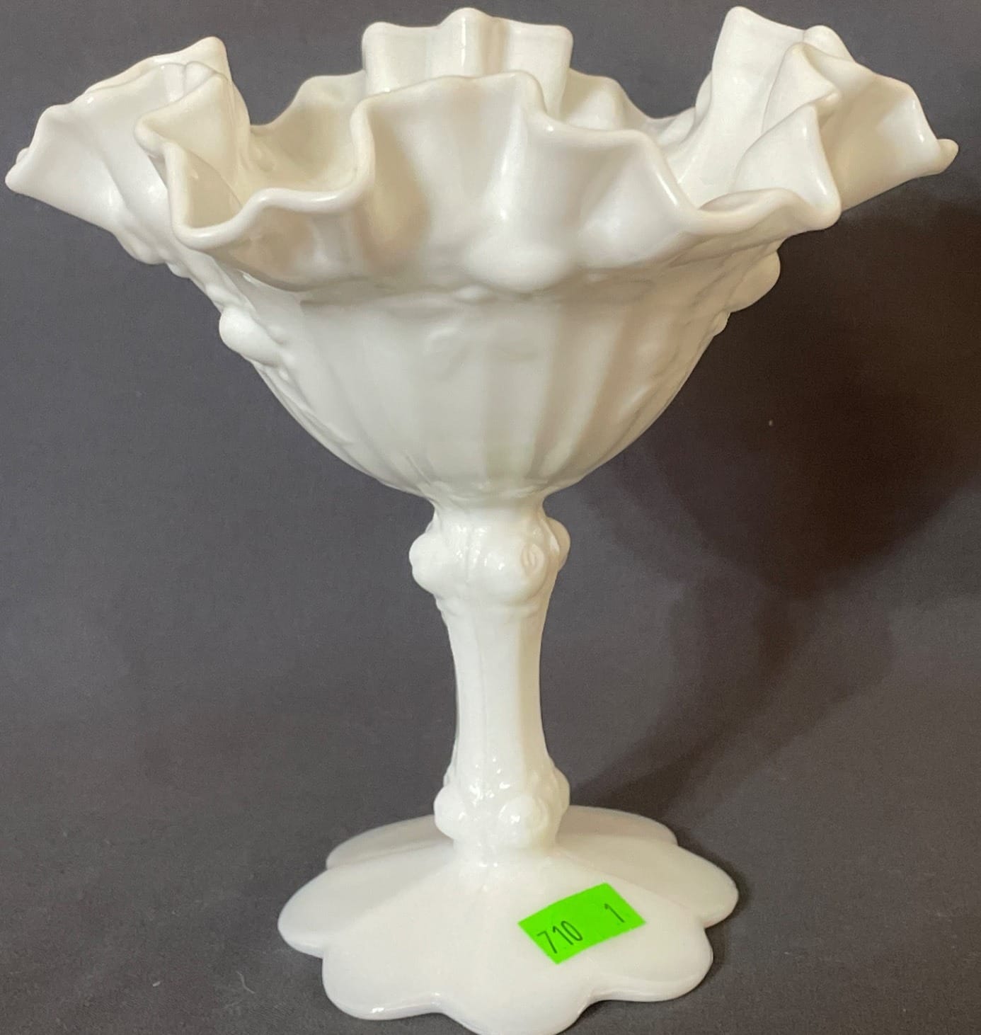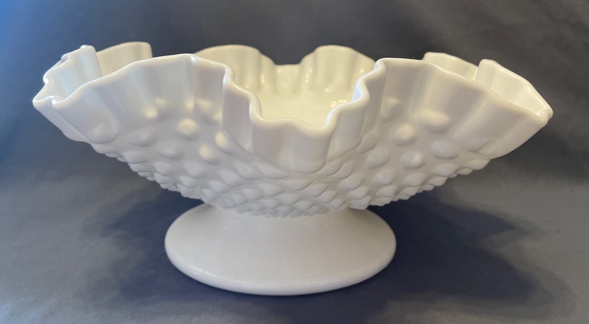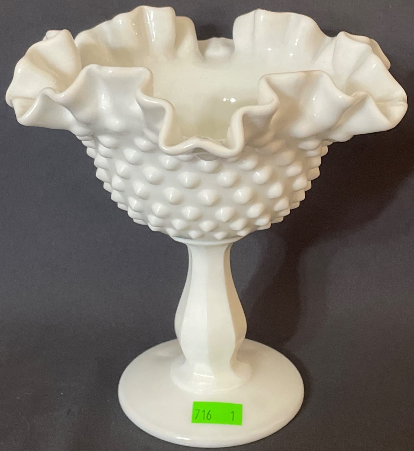 208 Fenton Milk Glass Hobnail Compote with Ruffled Edge, 6?