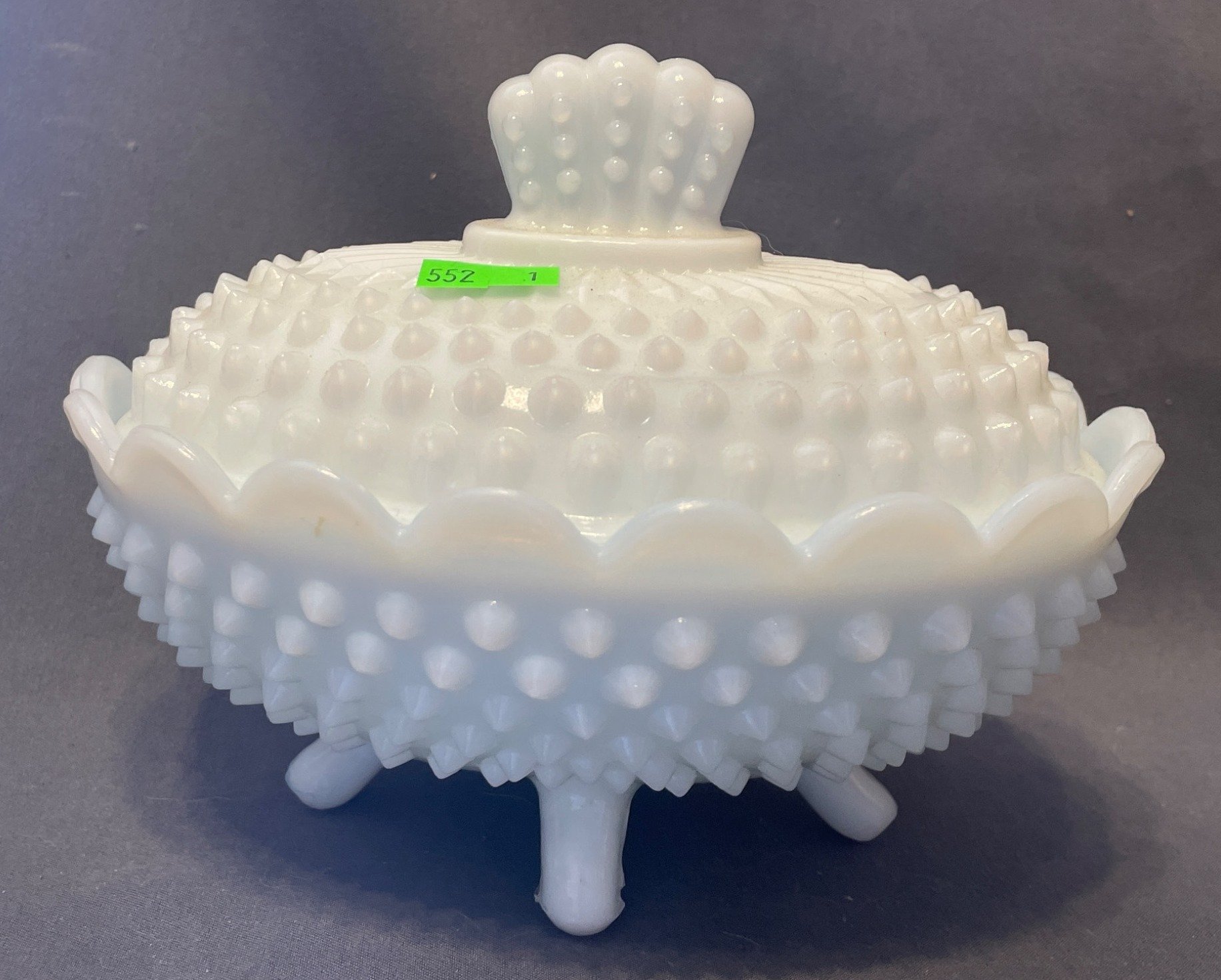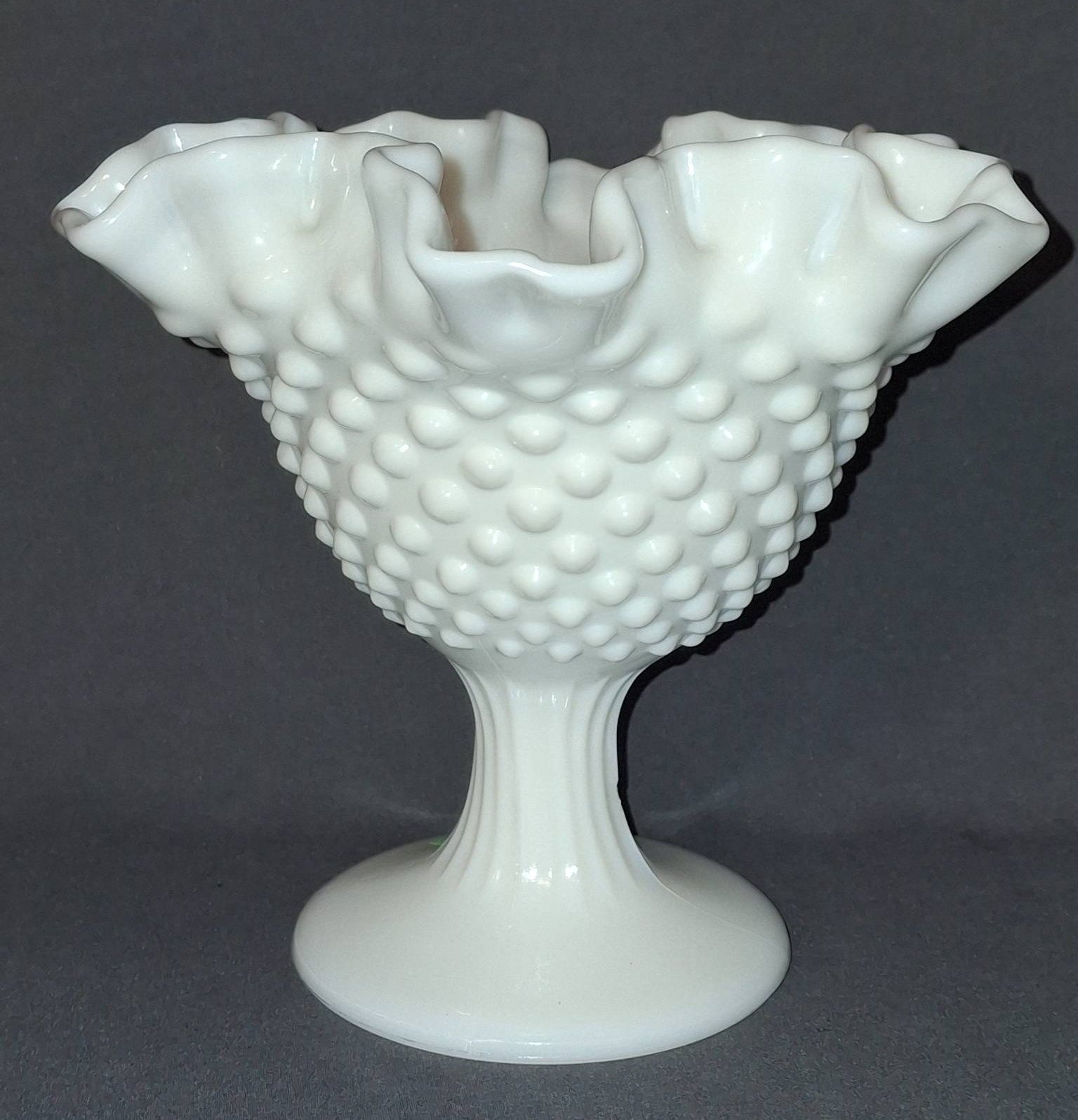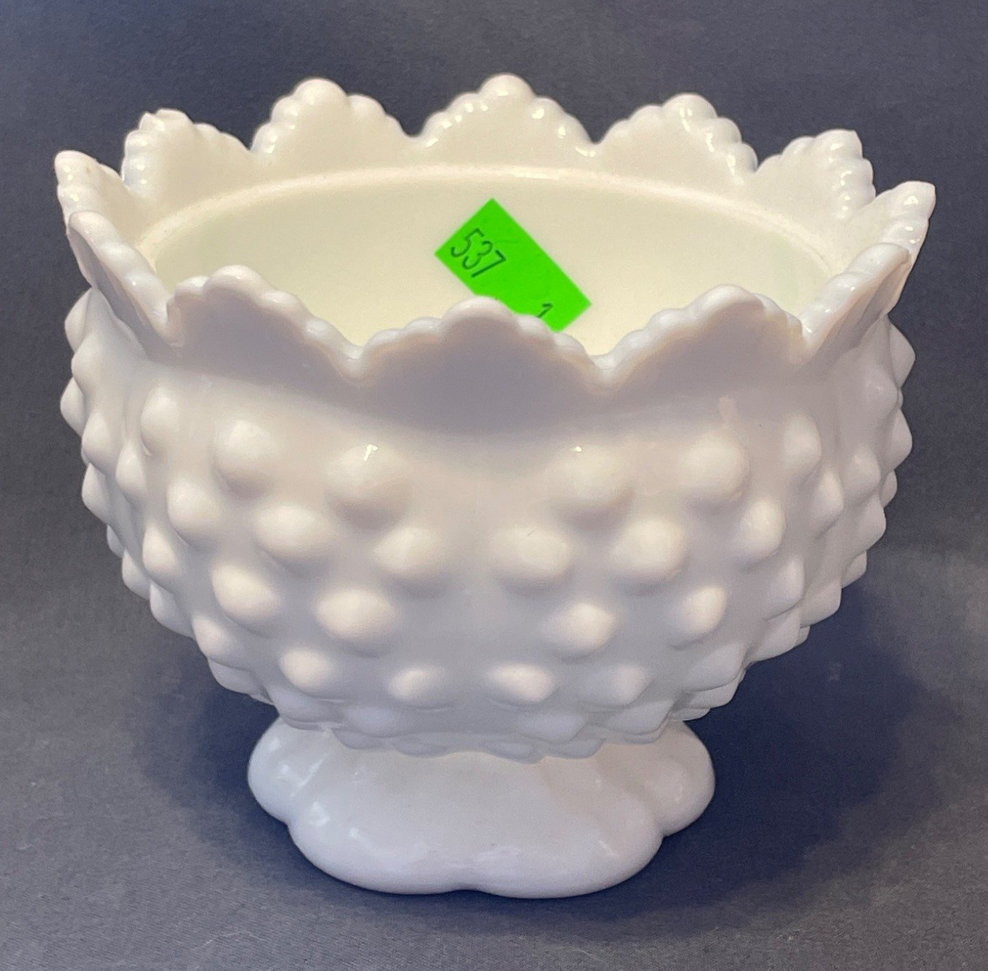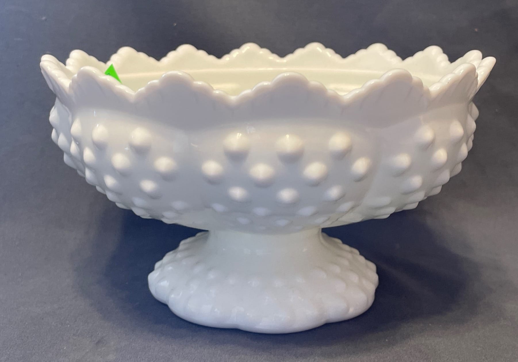 208 Fenton Milk Glass Hobnail Compote with Ruffled Edge, 6?