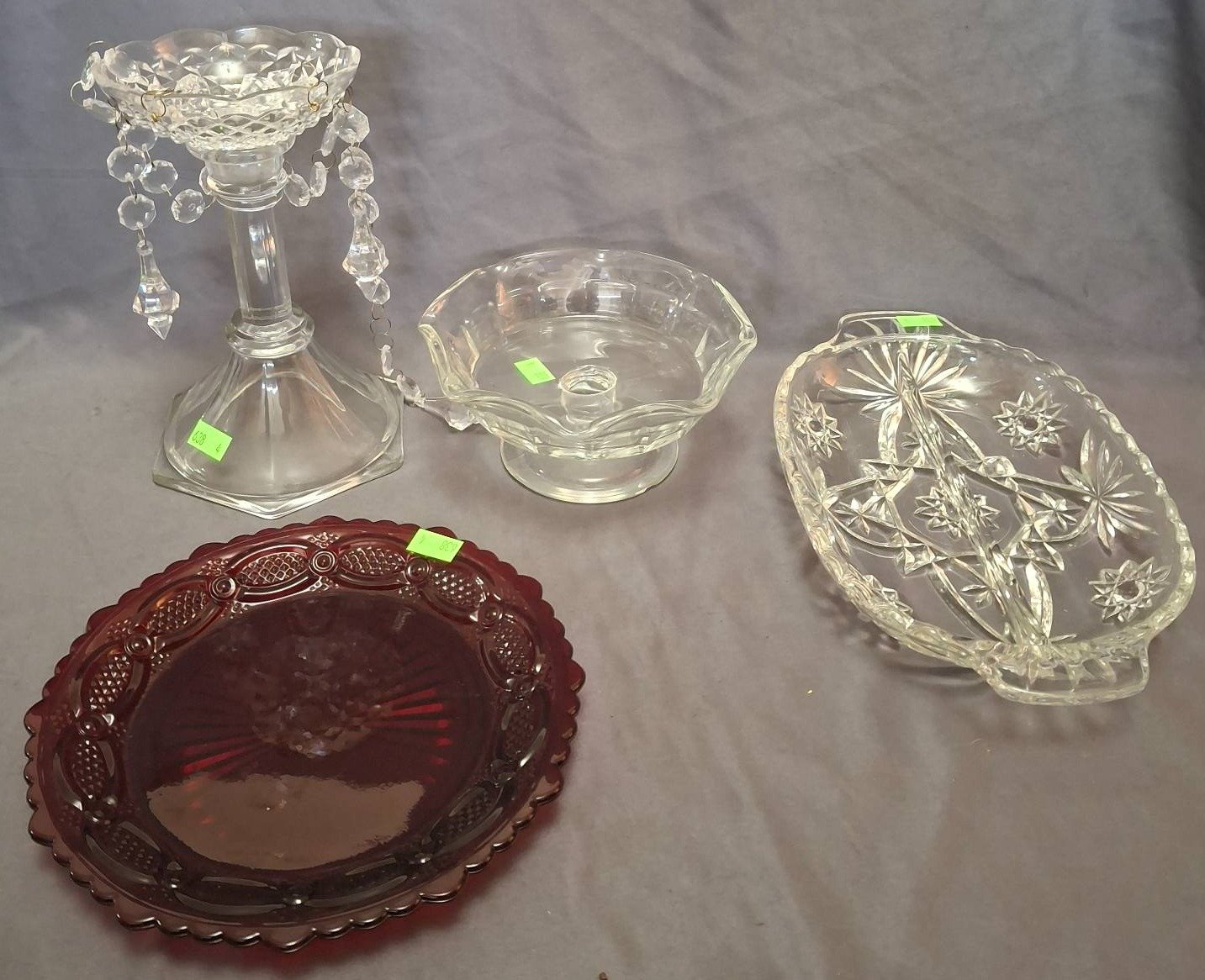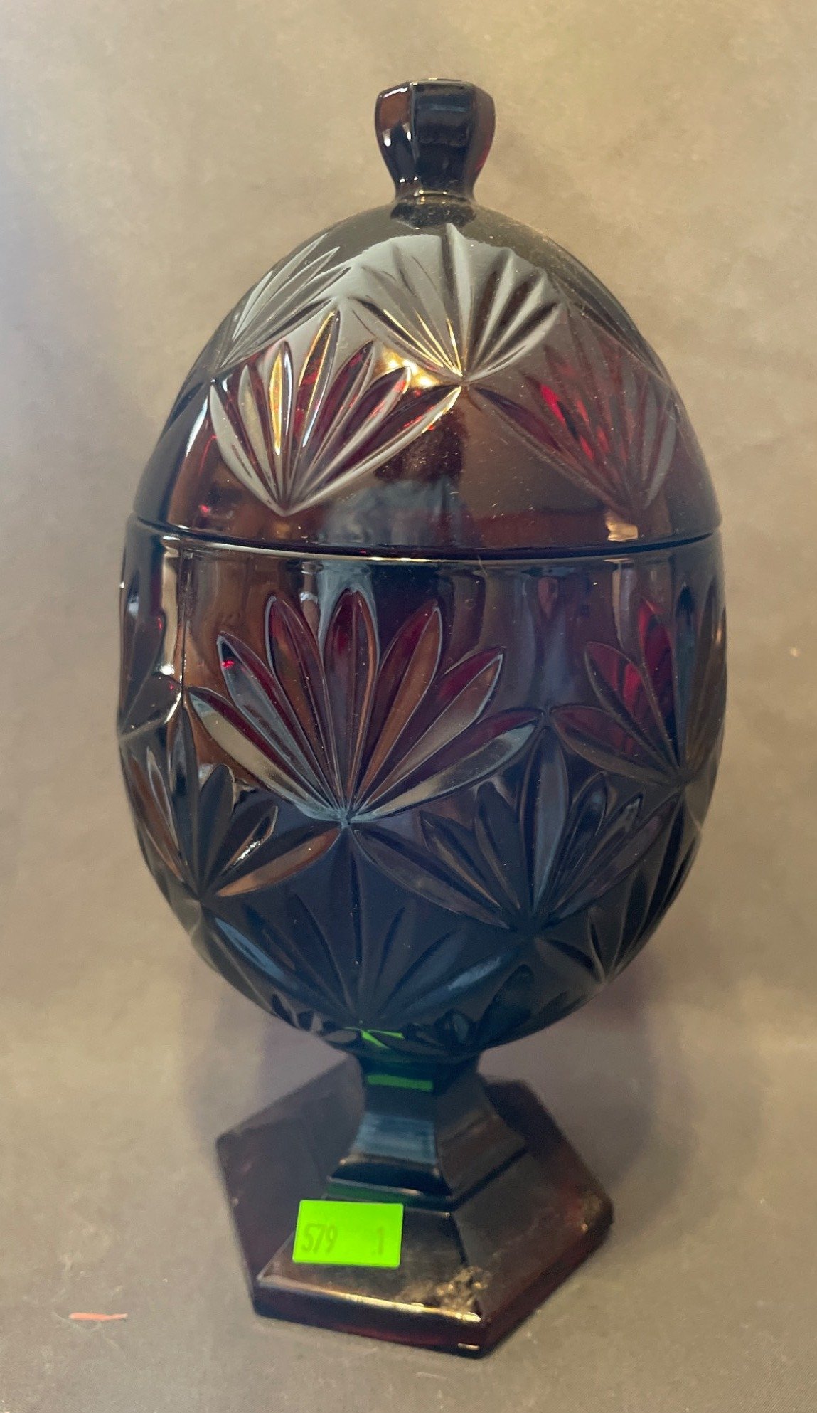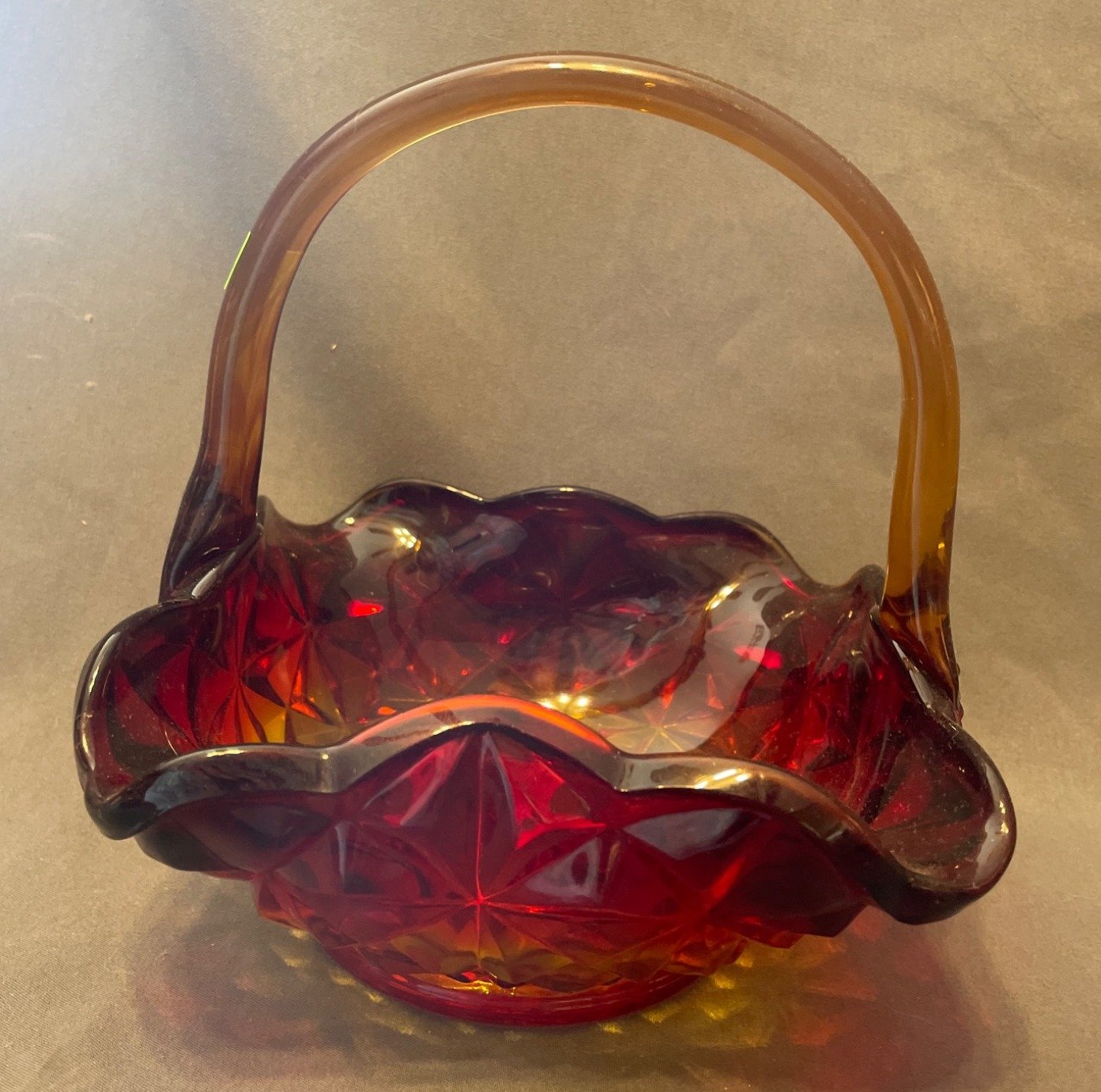 407 Red Carnival Glass Thumbprint Compote and Plate 7.5”