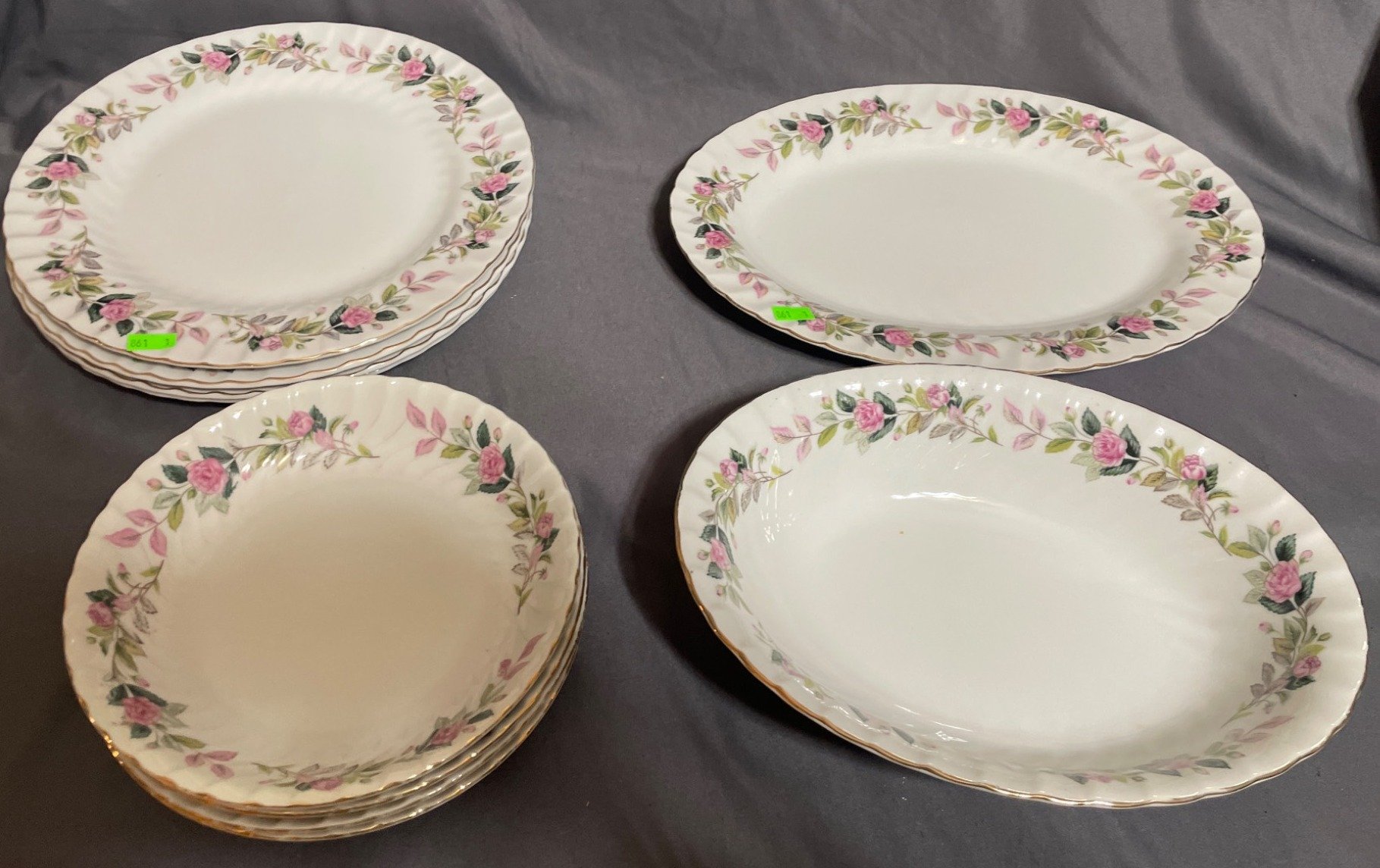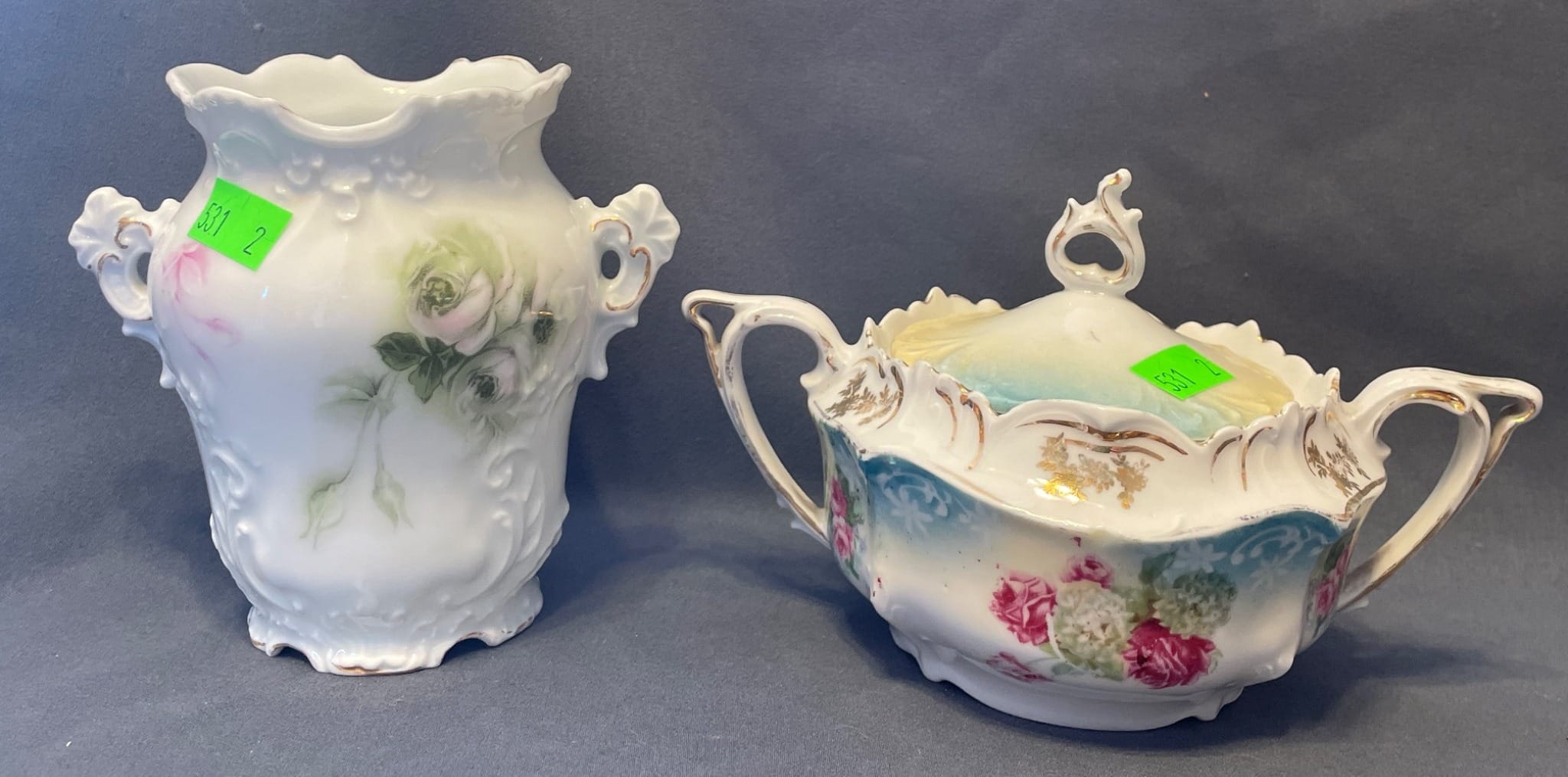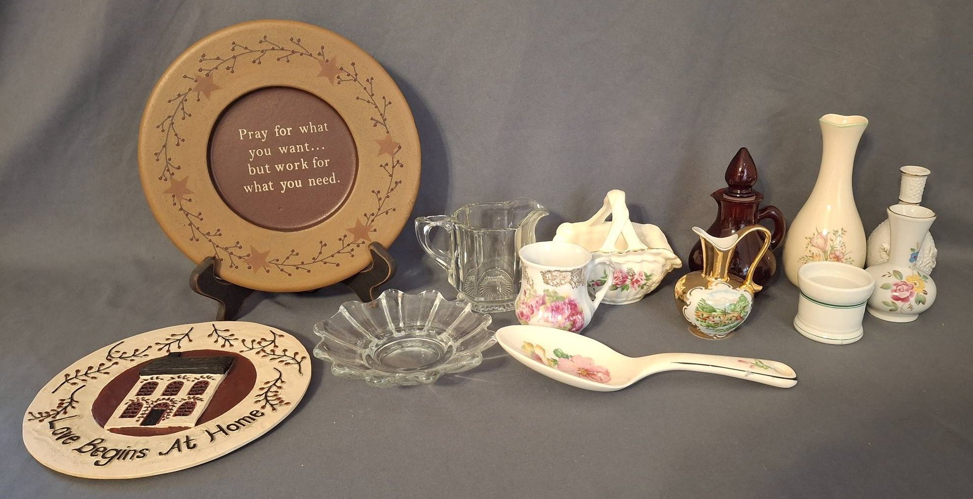 204 Porcelain Bud Vases, Porcelain Basket, Decorative Plates, Creamer, Cruet, Etc. 2?-8.5?