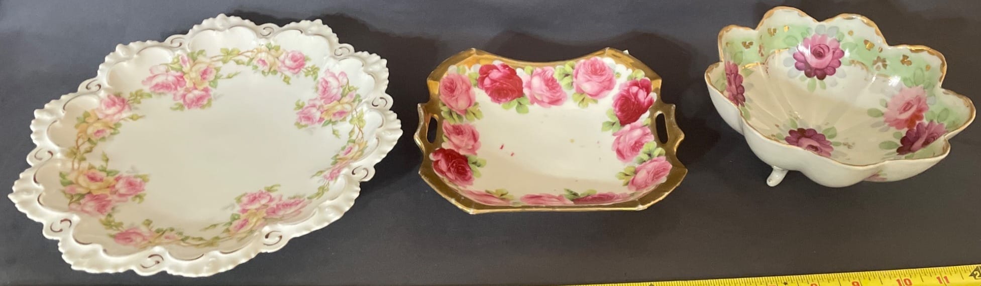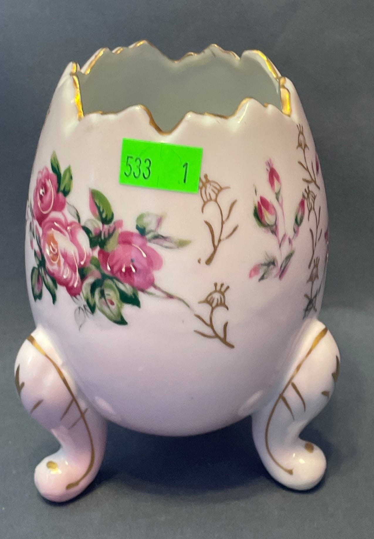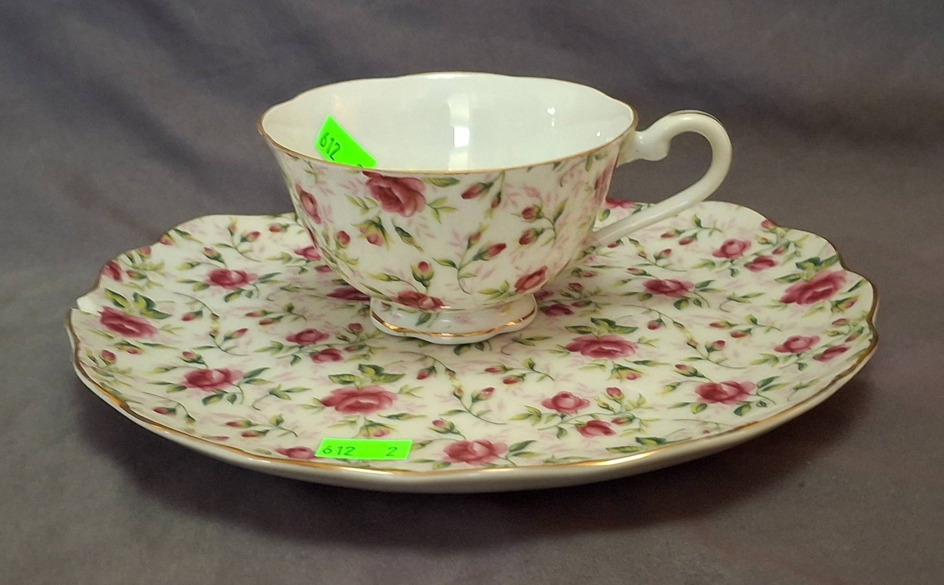 218 Porcelain Tableware and Glassware with Floral and Holiday Motifs Inc. Snowglobe, Ceramic Baskets, Compote, Teacups, Plates, Etc.