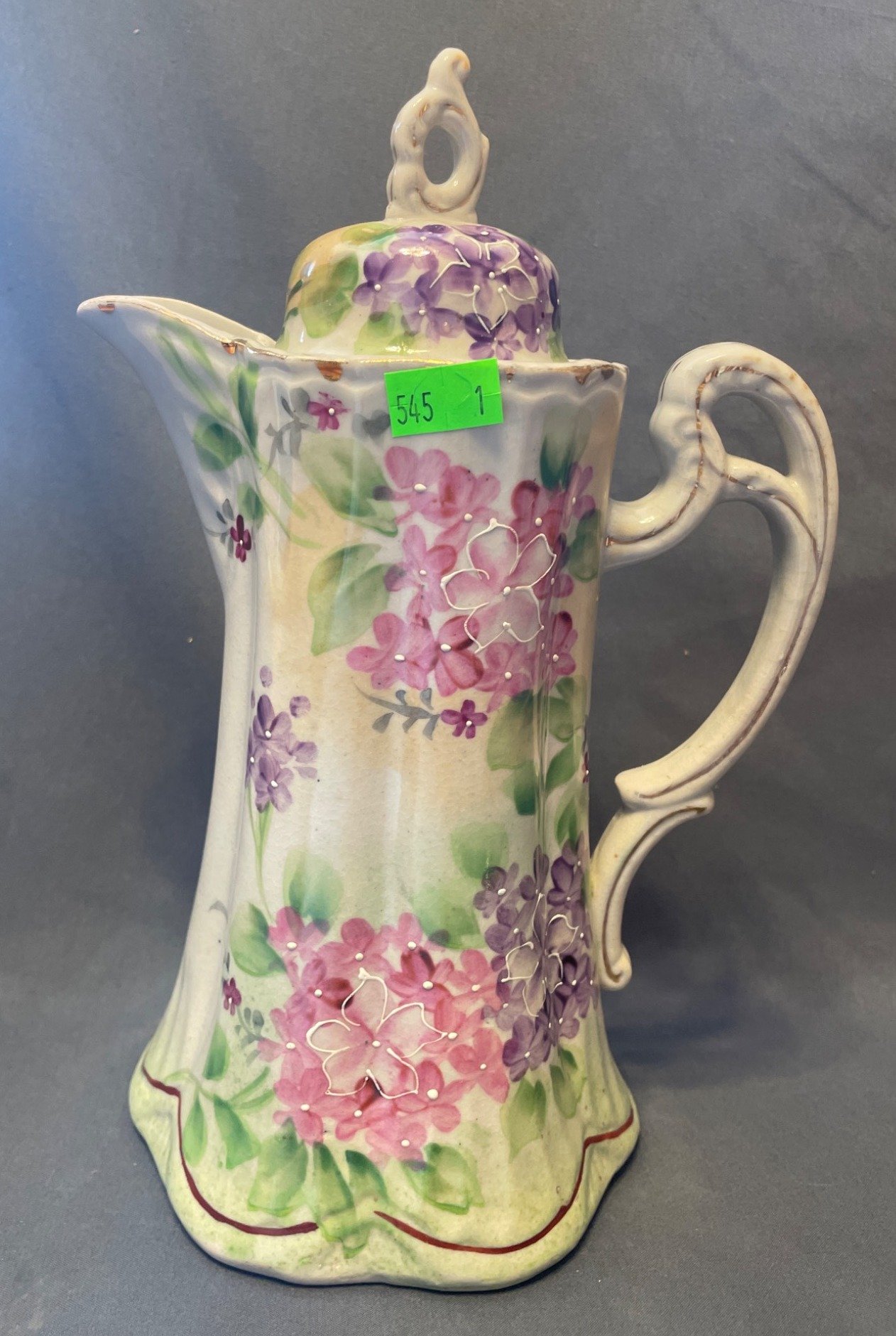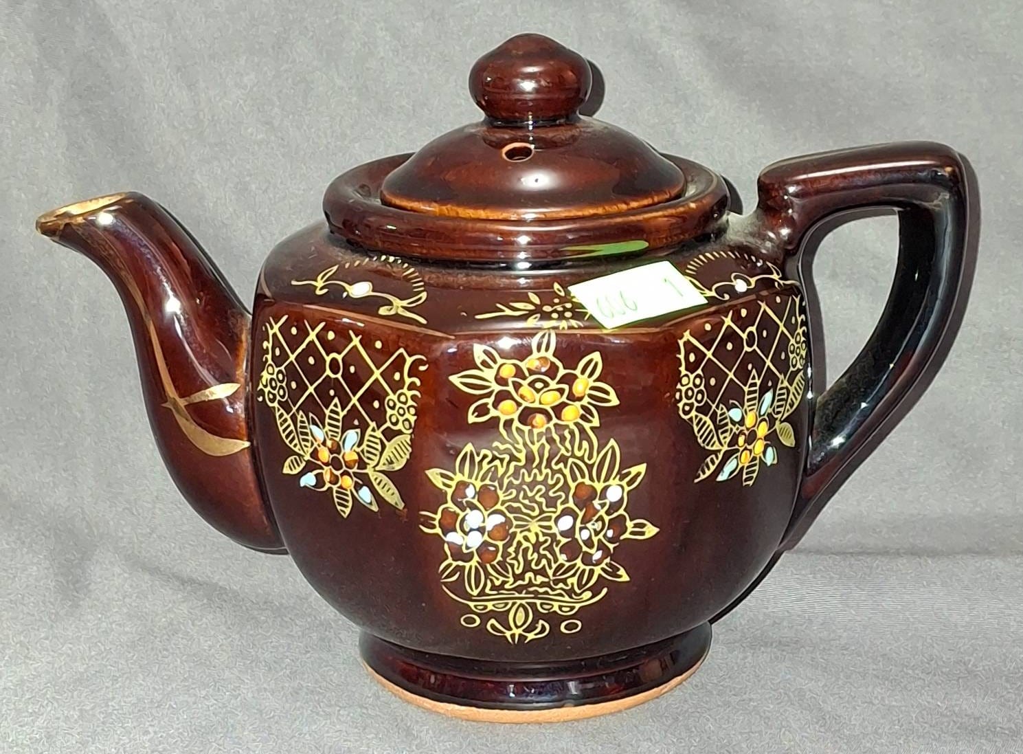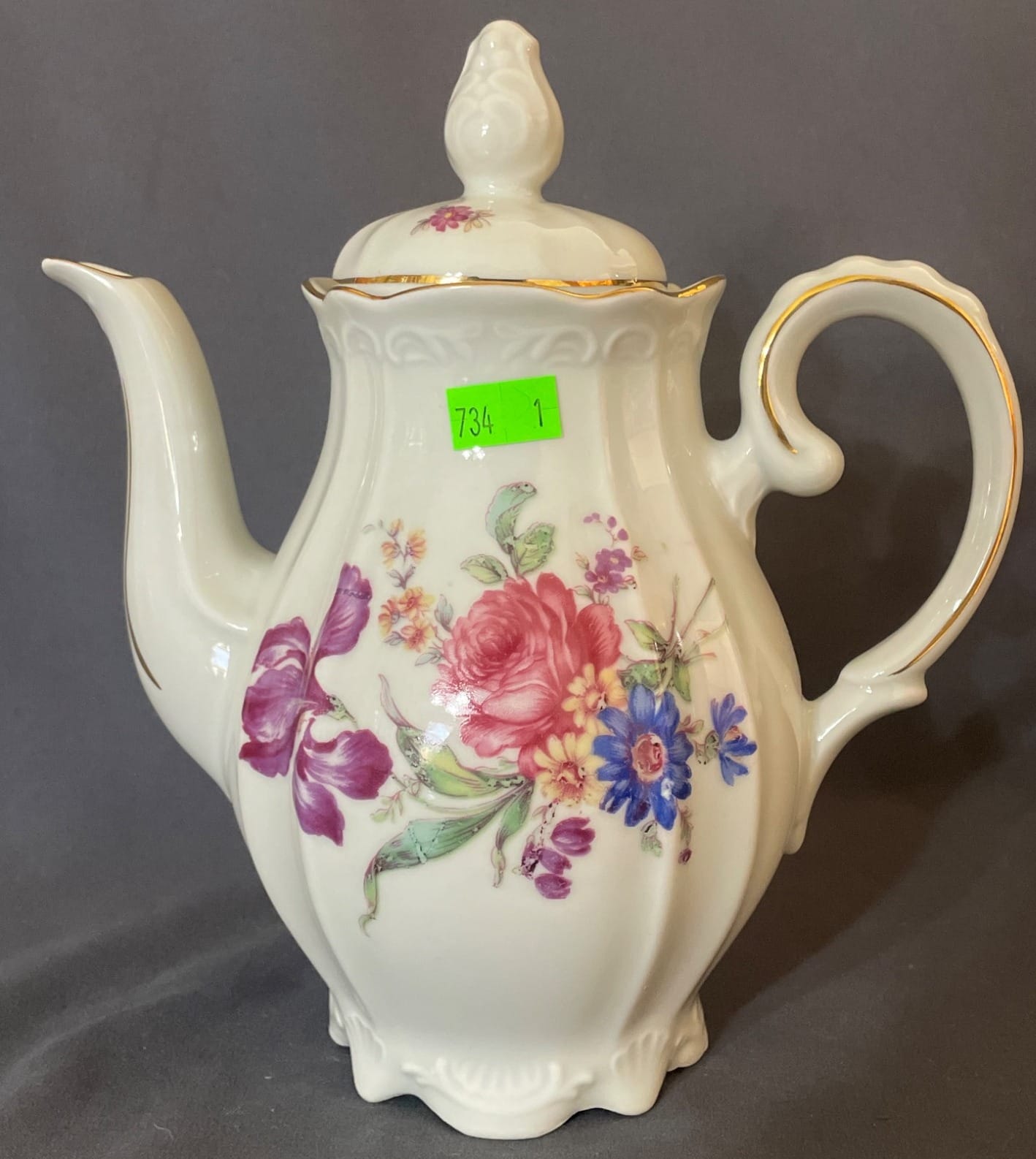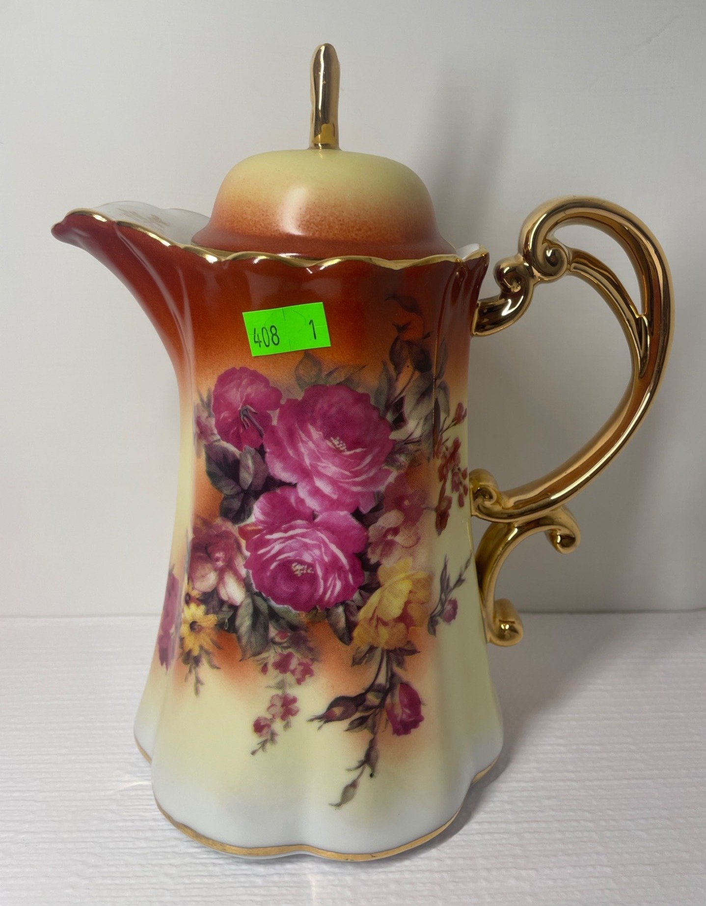 408 Victorian Teapot With Gold-Tone Handle and Floral Pattern 10”