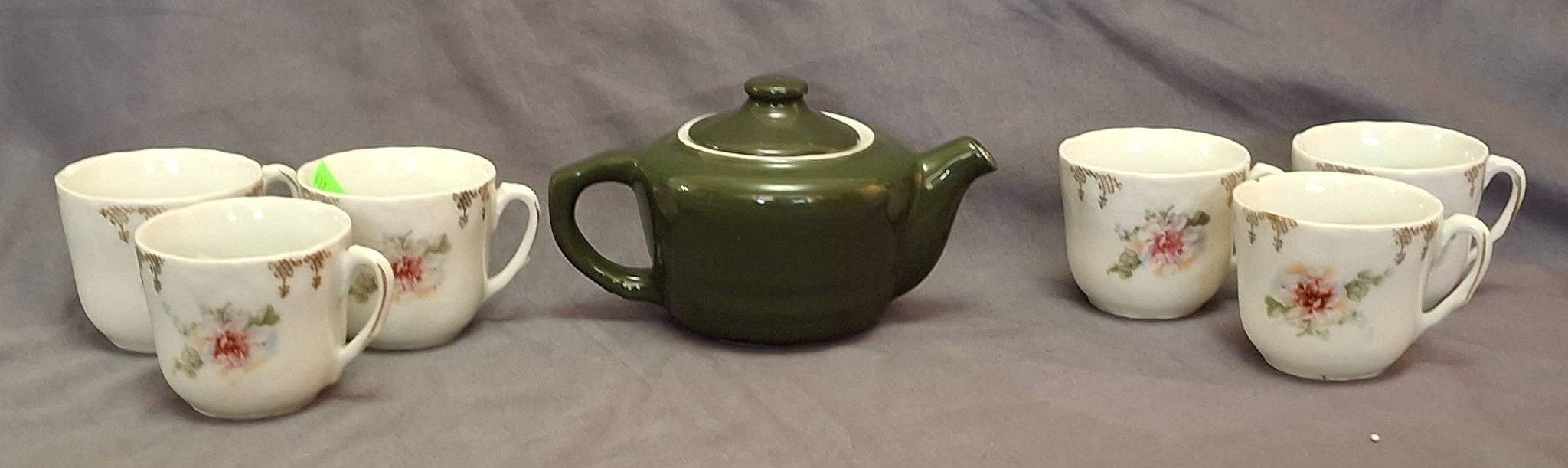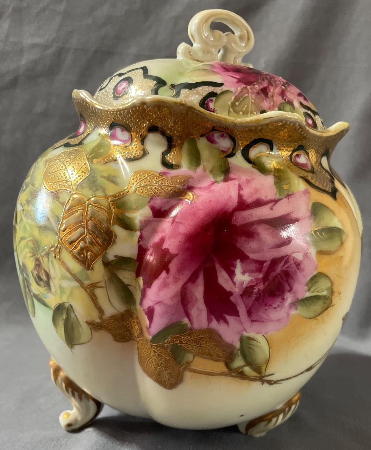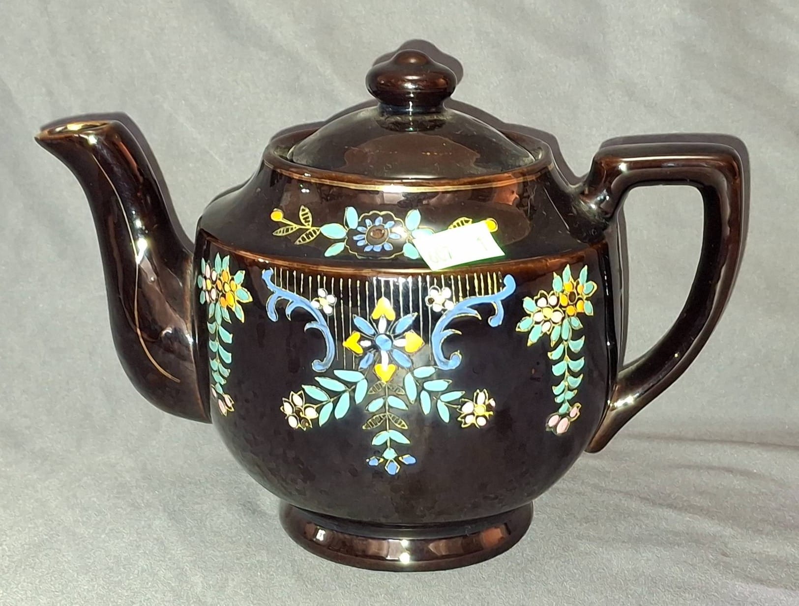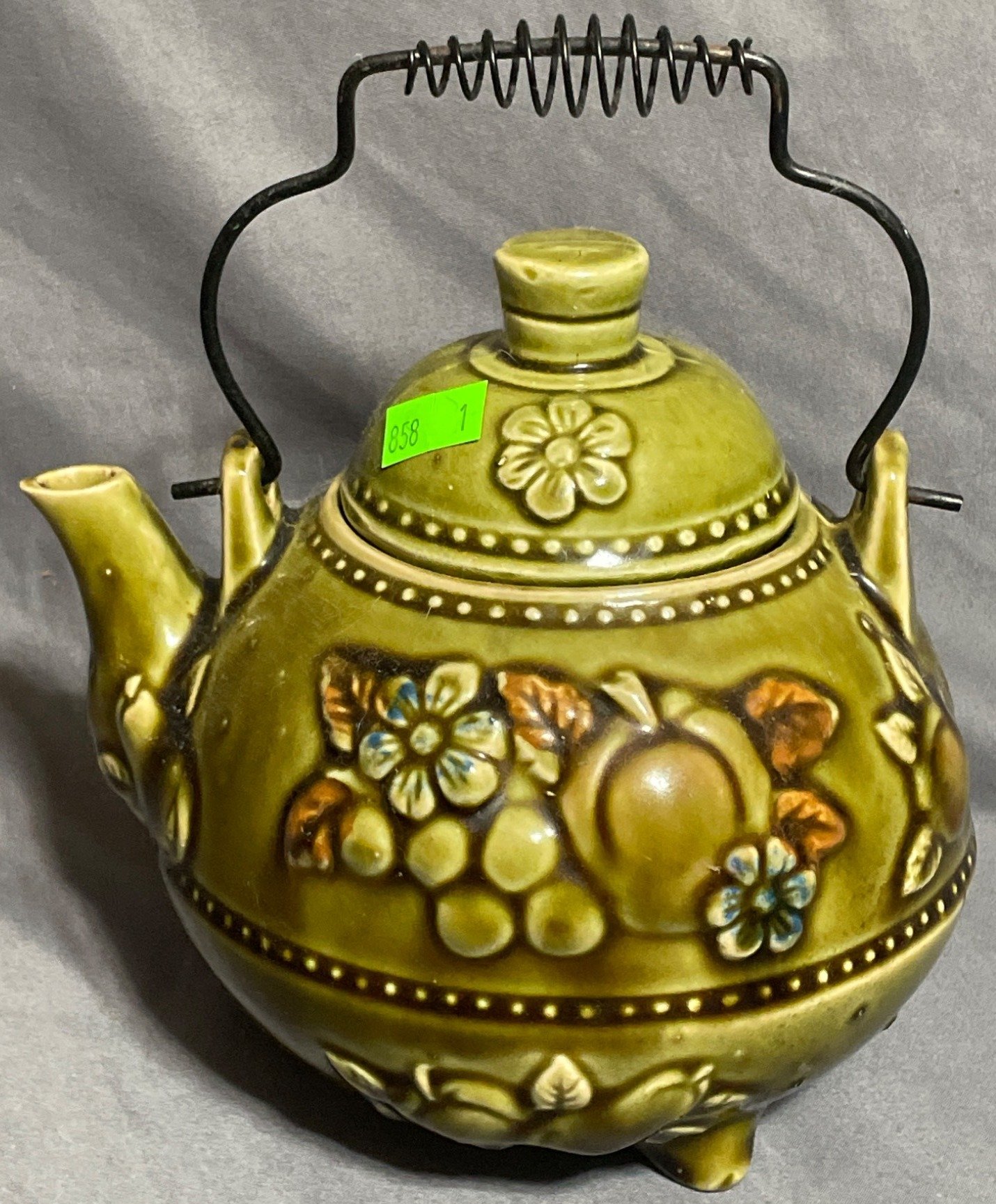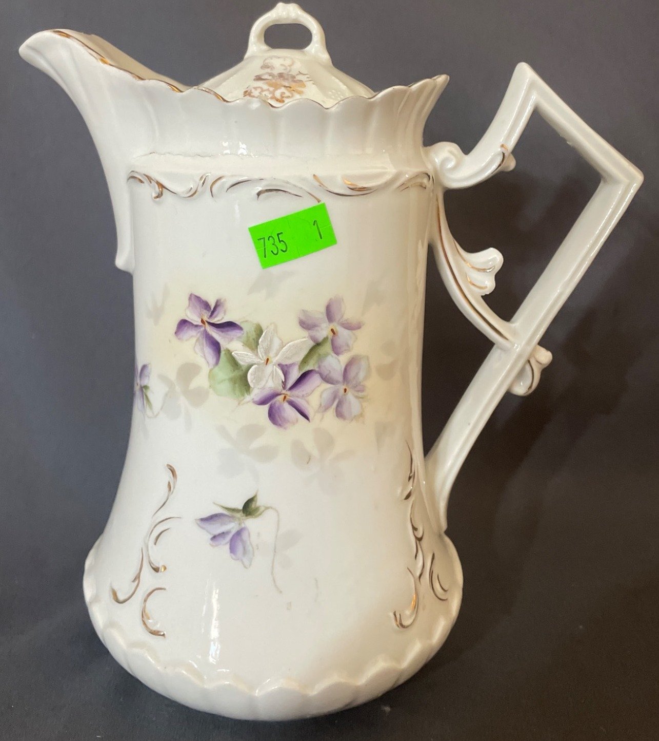 408 Victorian Teapot With Gold-Tone Handle and Floral Pattern 10”