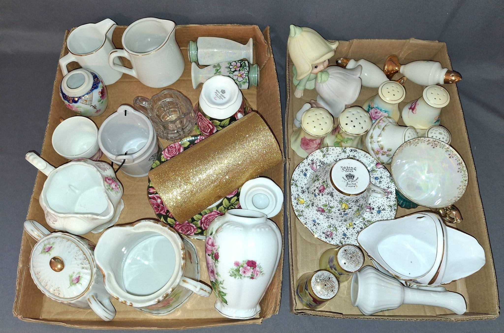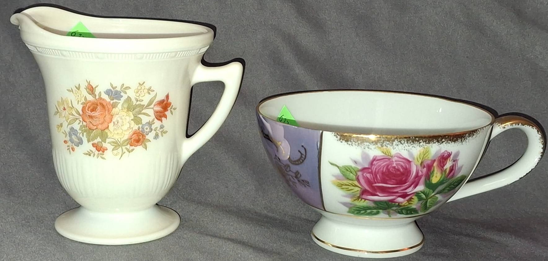 219 Porcelain Tableware and Figurines Inc. Teacups, Creamers, Salt & Pepper Shakers, Sugar Bowl, Etc. (One Figurine broken)