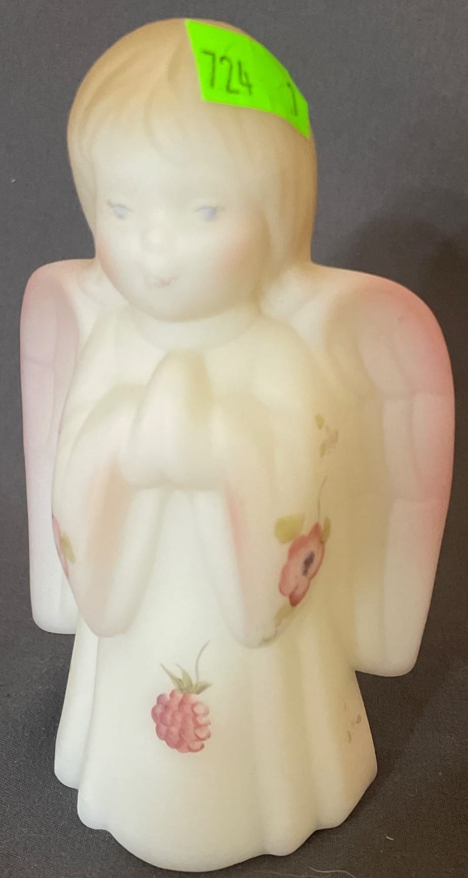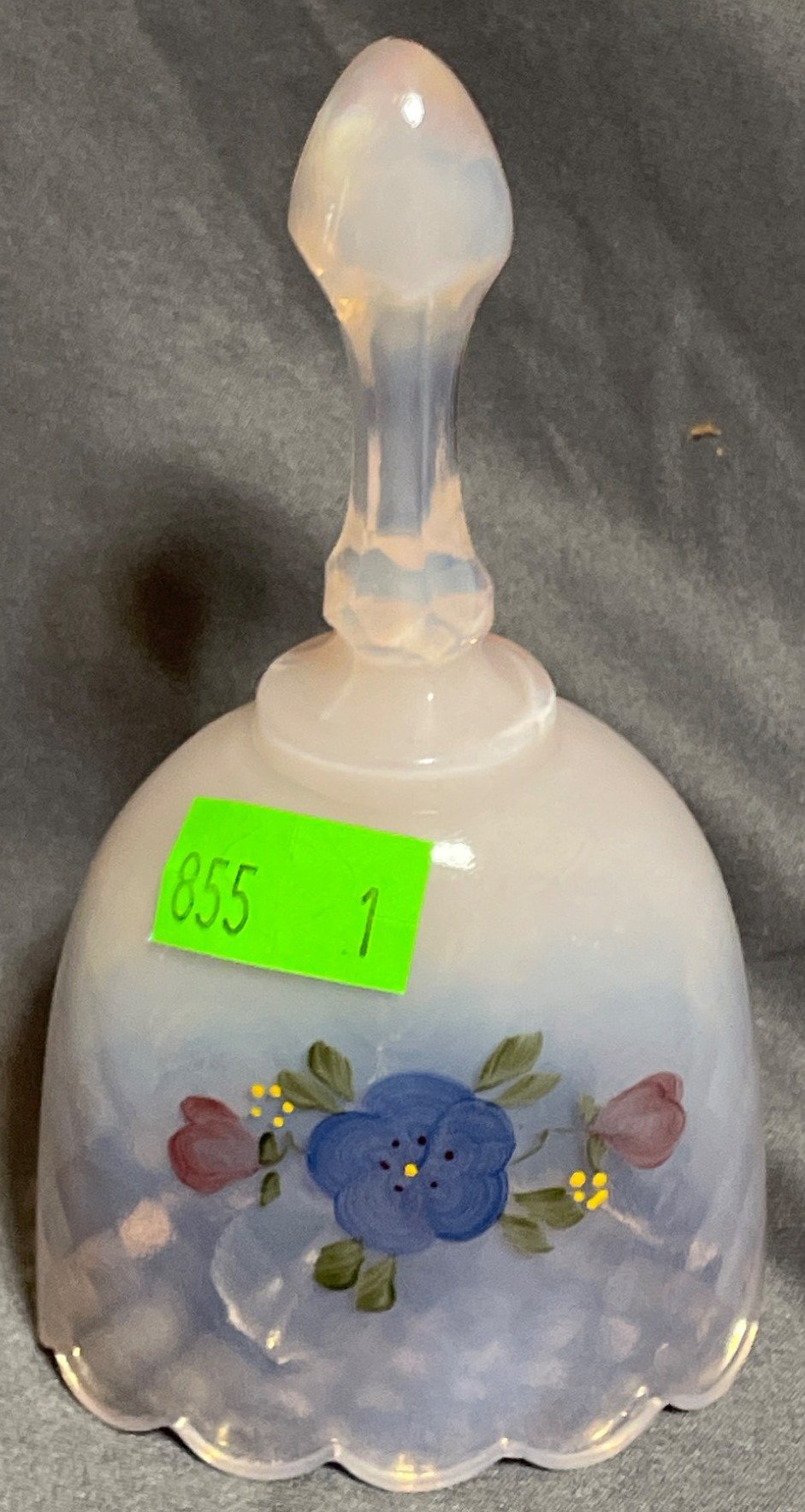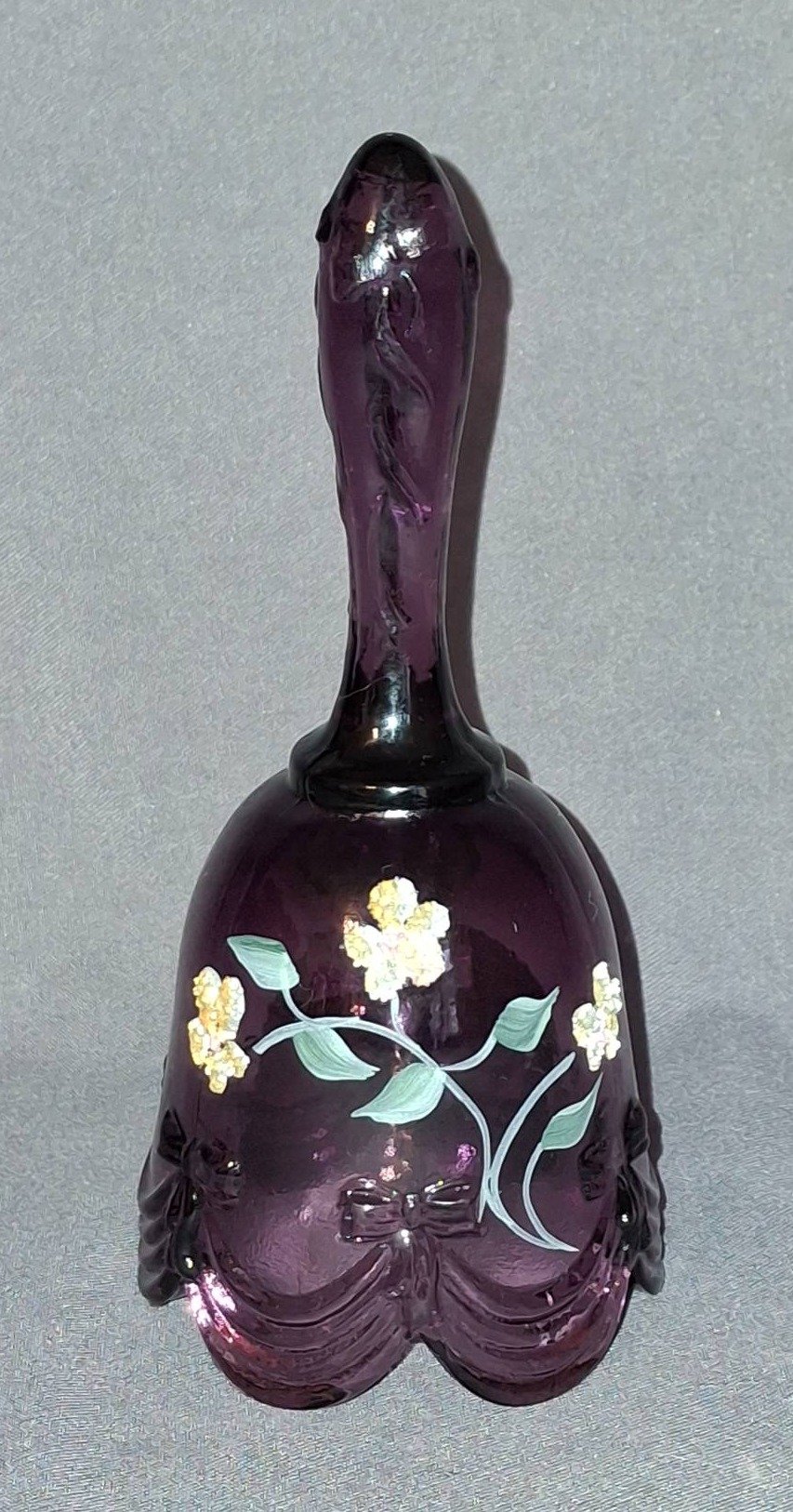214 Fenton Purple Glass Bell with Hand-Painted Floral Design 4.5? Hgt.