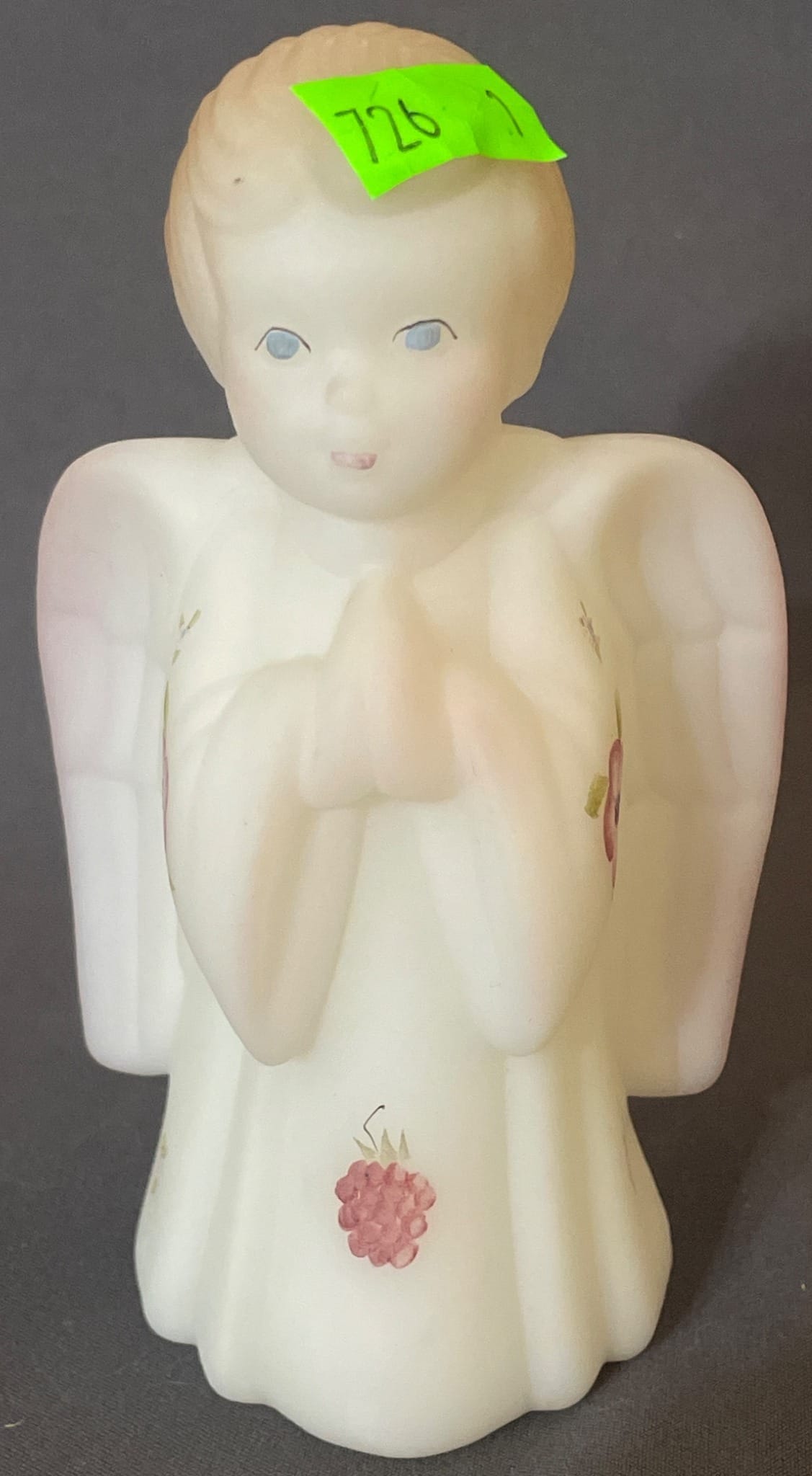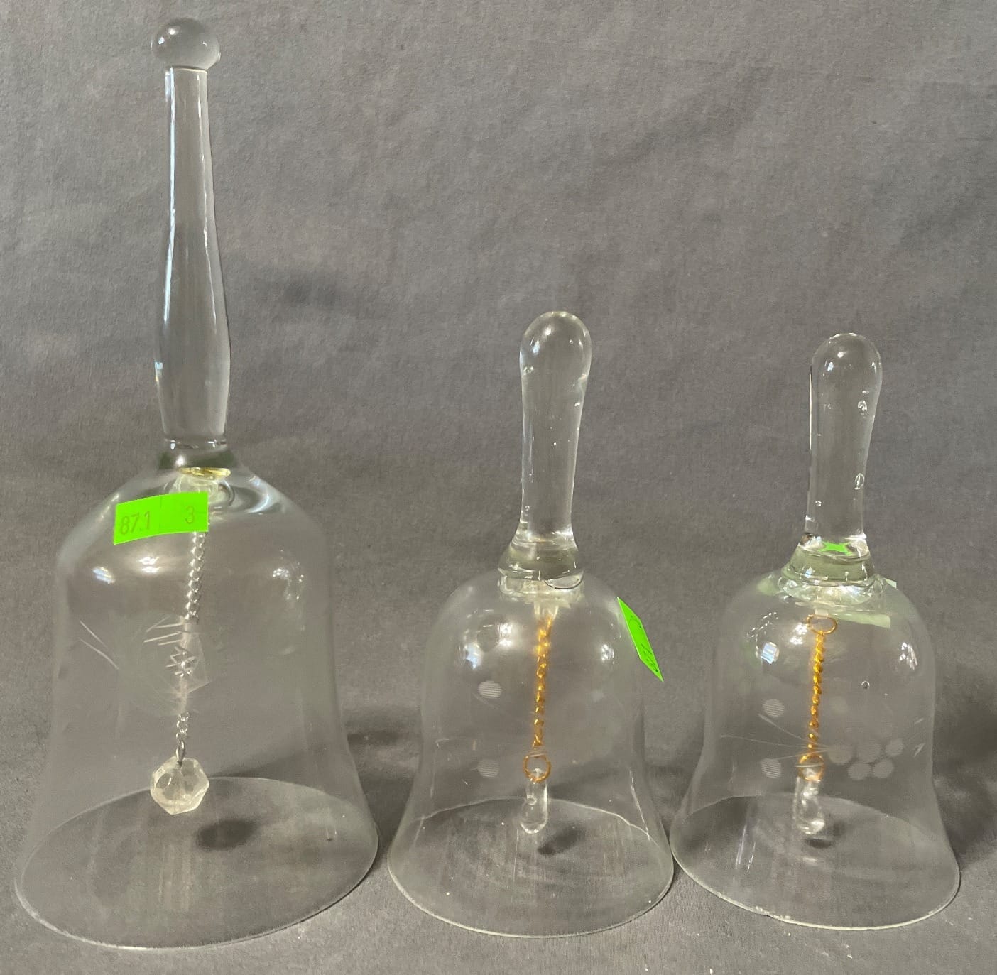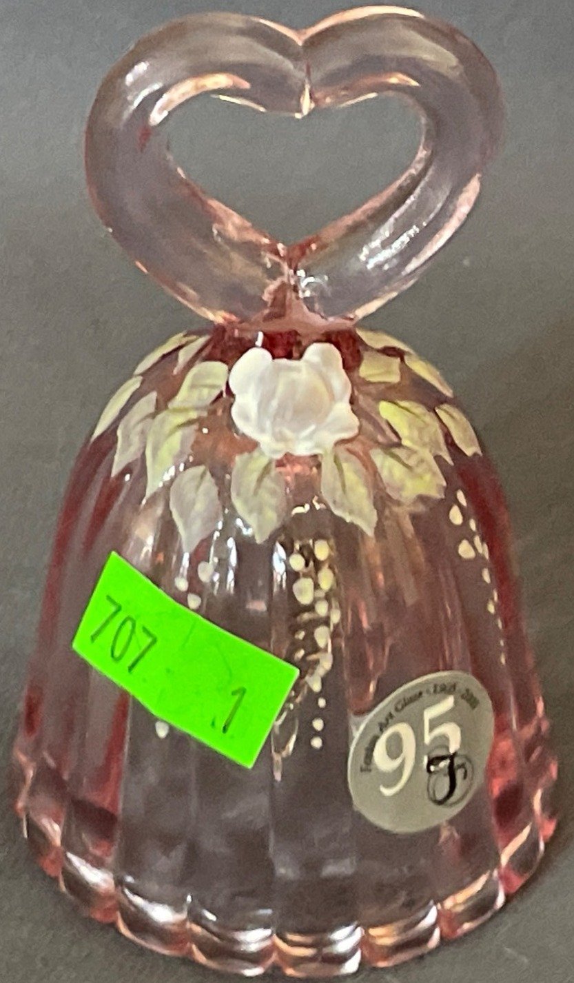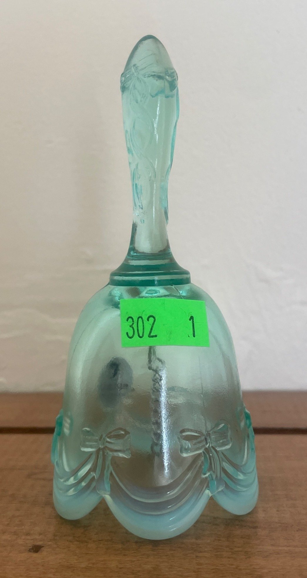 302 Fenton Art Glass Bell with Bow Motif and Crystal Clapper, 7”
