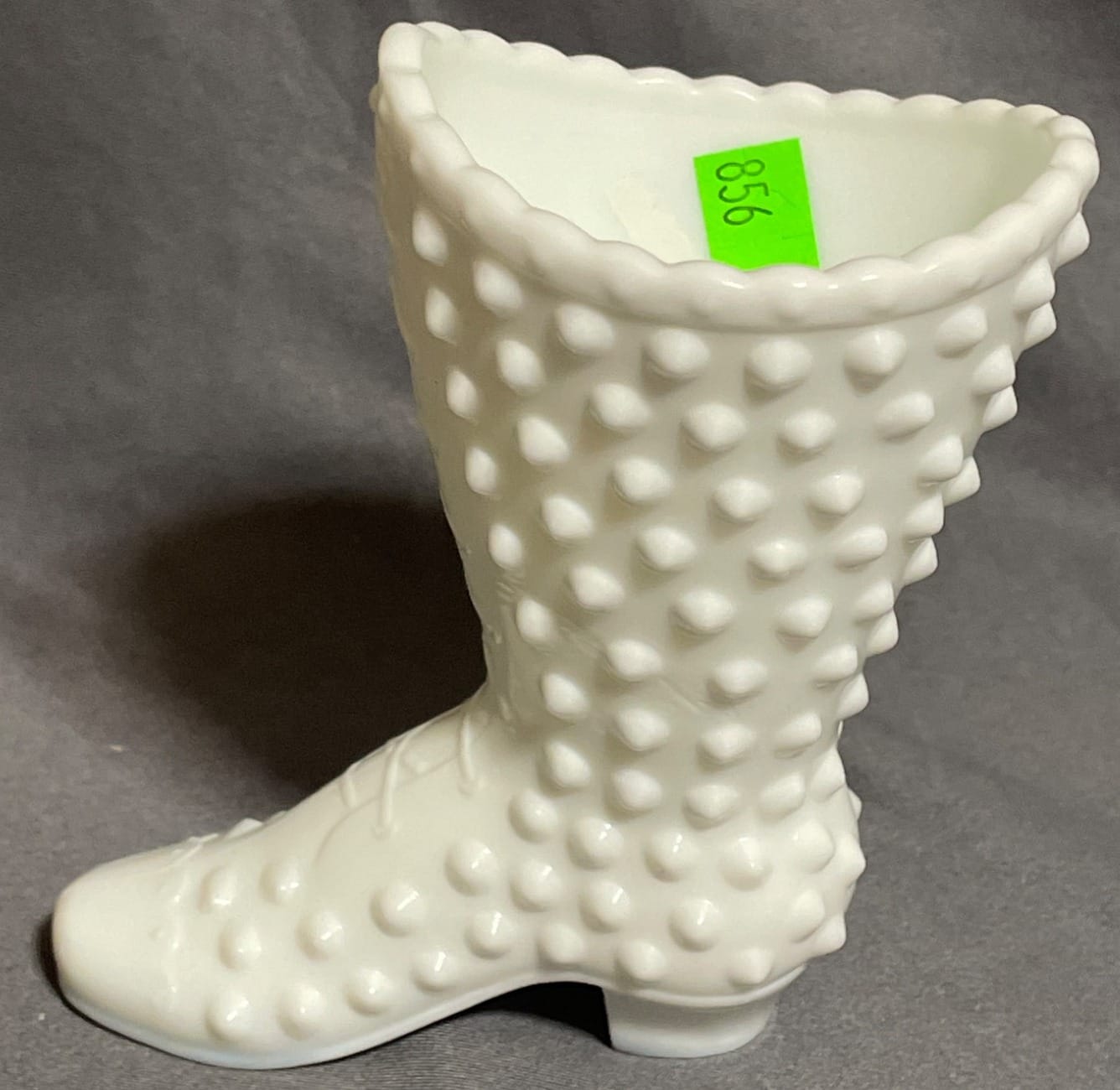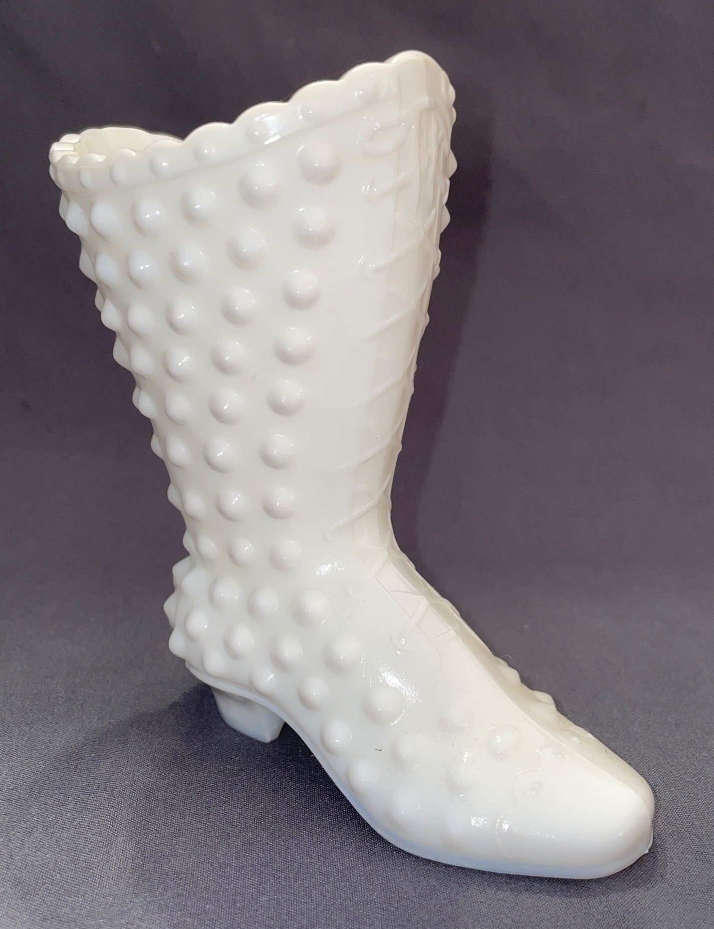 505 Fenton Milk Glass Hobnail Boot Vase, 4.25?