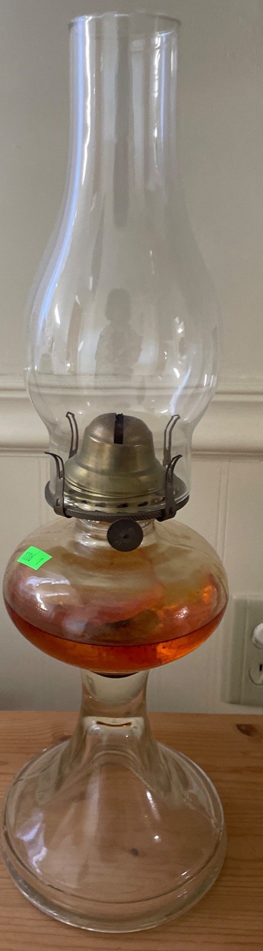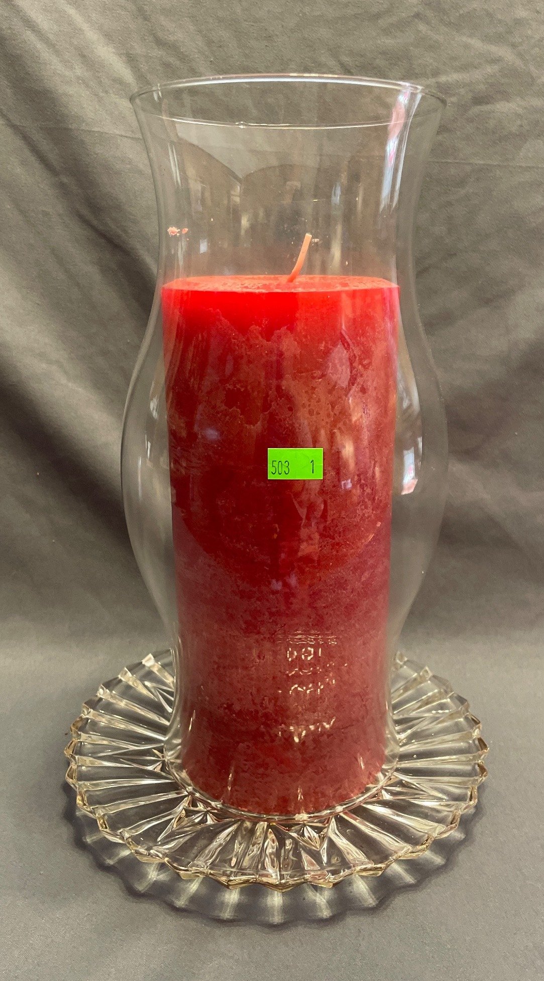503 Glass Hurricane Candle Holder With Red Pillar Candle, 12”H