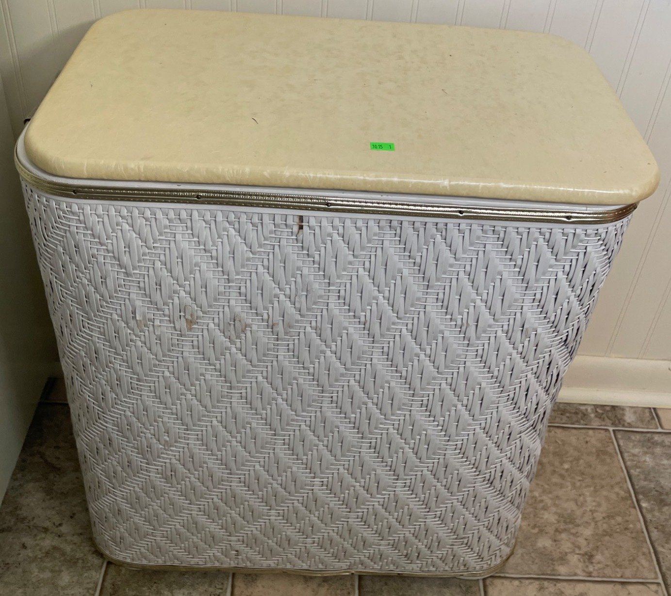 1015 Rectangular Wicker-Style Laundry Hamper with Cream-Colored Lid 21”x12”x24”