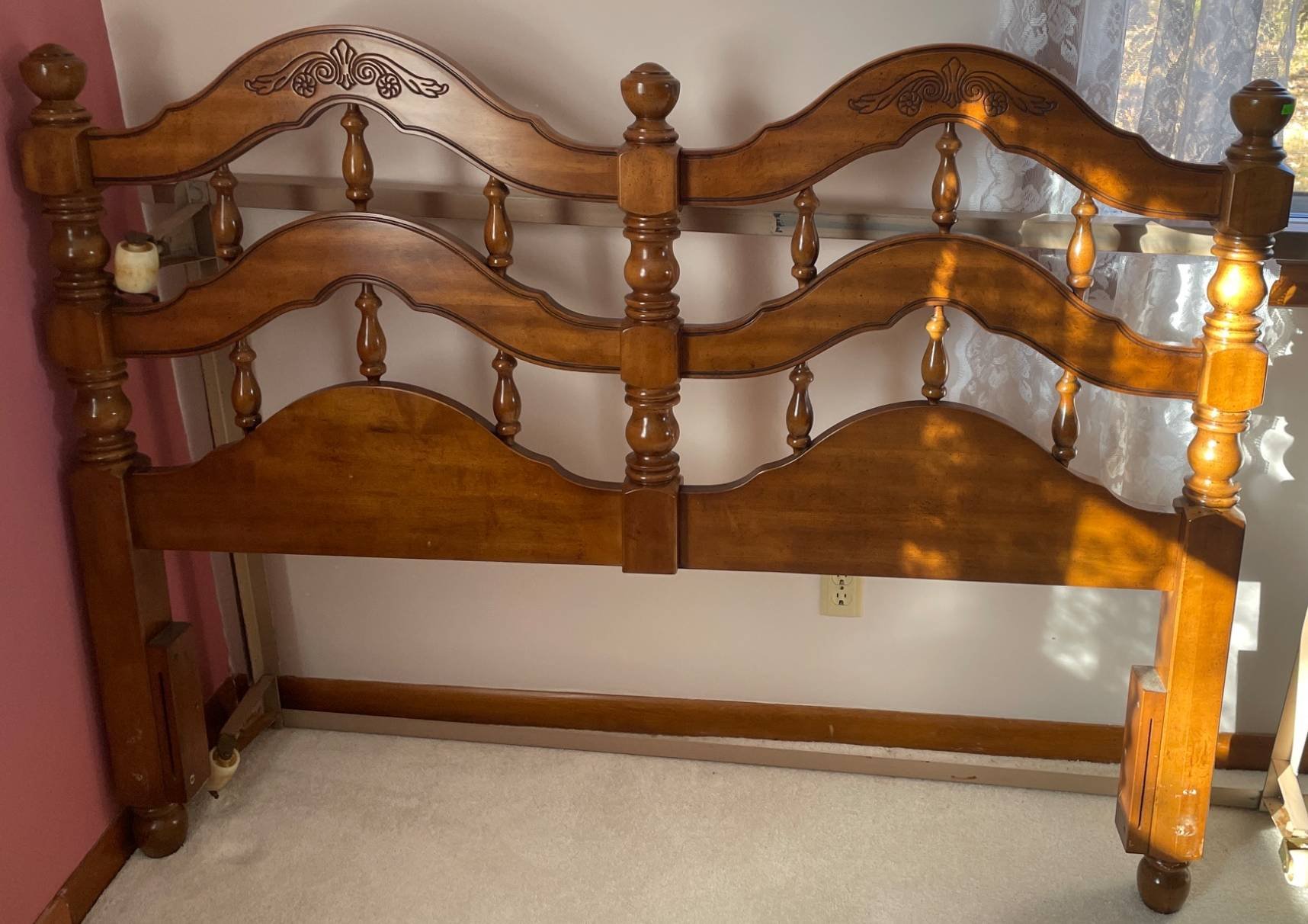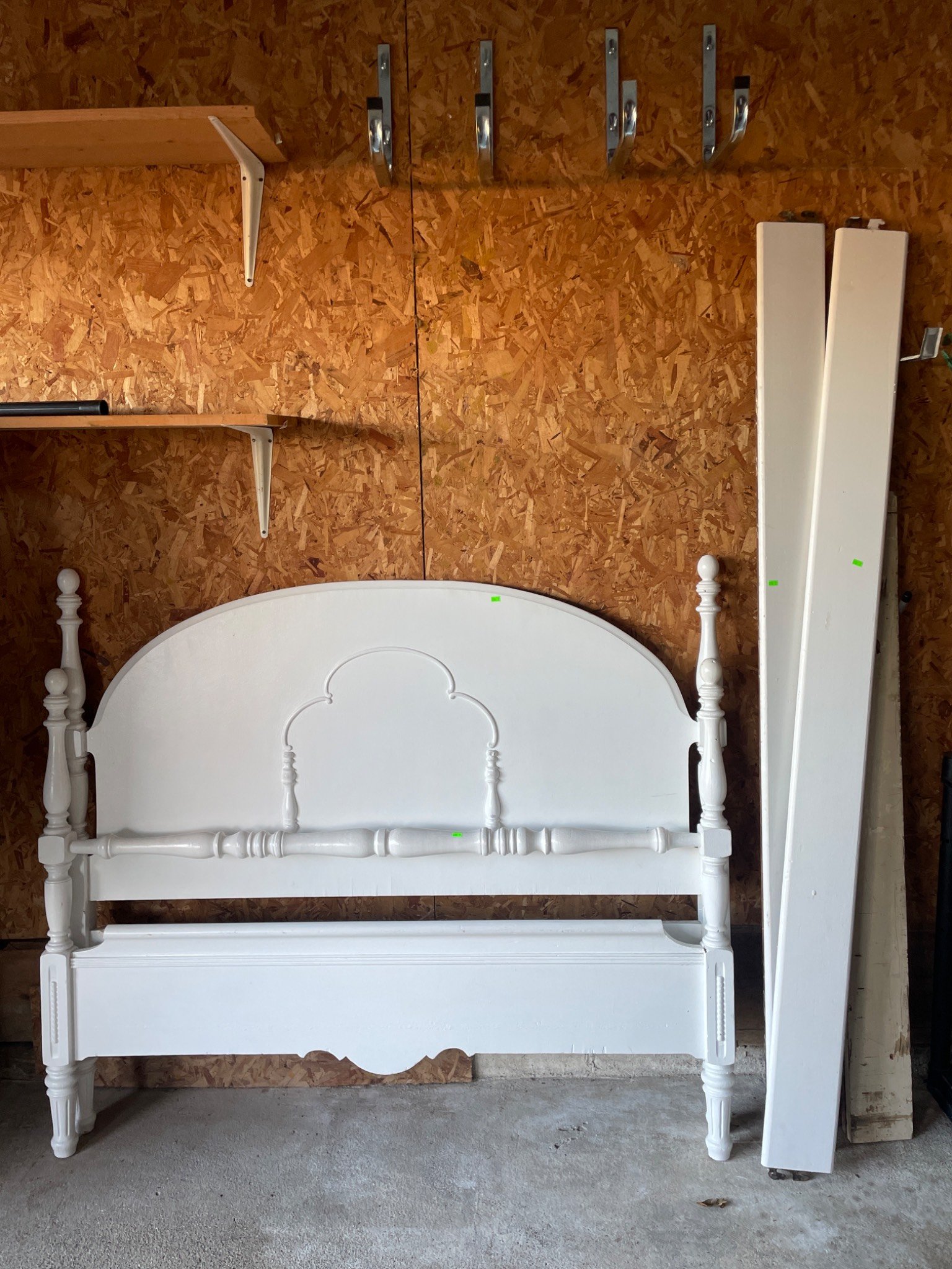 2090 White Painted Full-Size Bed Frame with Turned Posts and Side Rails 57”x74”
