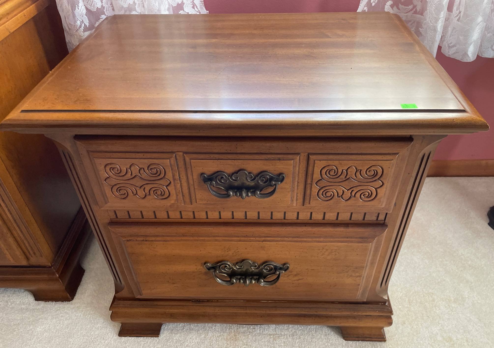 106 Sumter Cabinet Co. 2-Drawer Nightstand with Carved Accents 22”x17”x22”