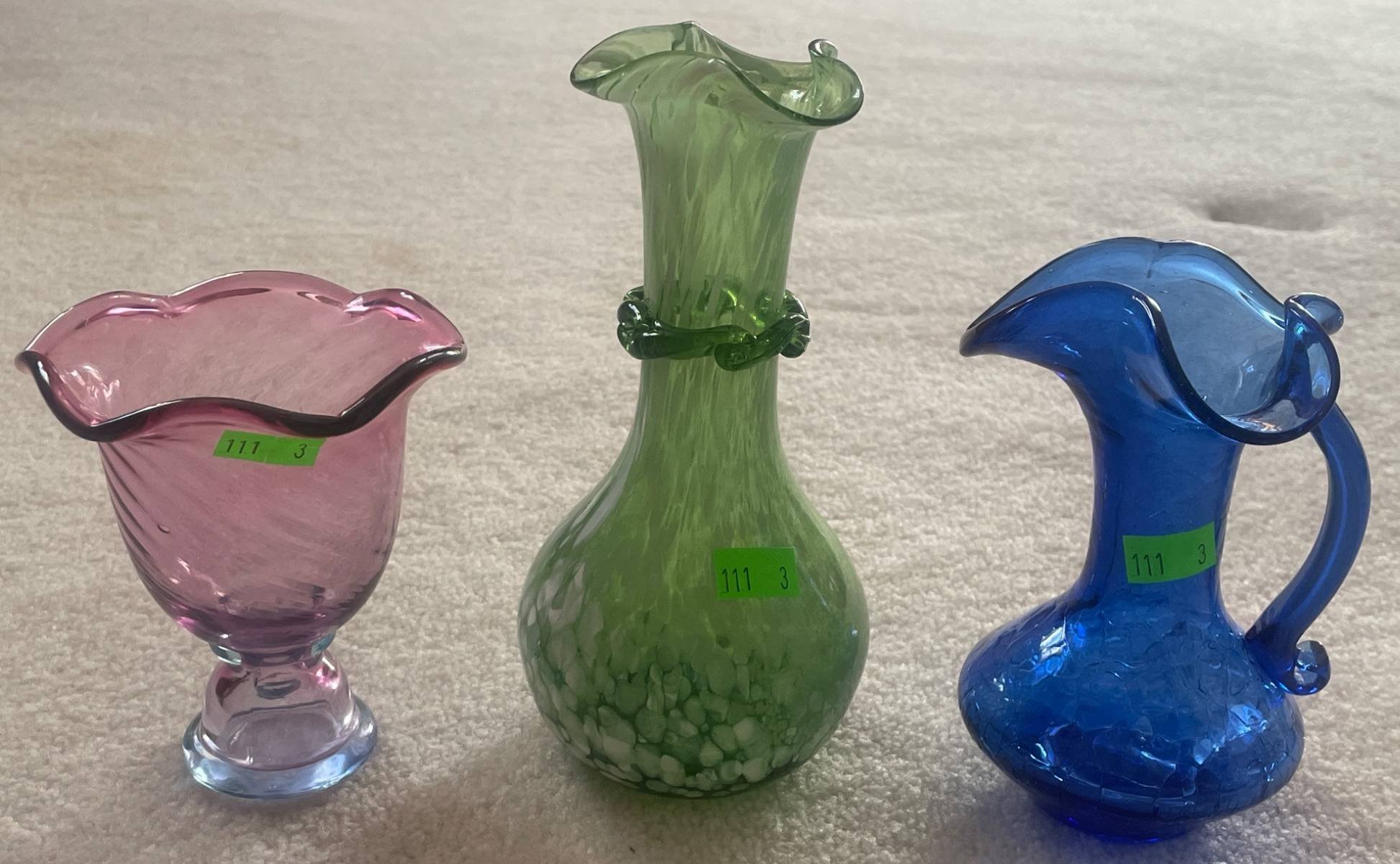 111 Hand Blown Glass Vases in Pink, Green, and Blue 4”,5”,7”