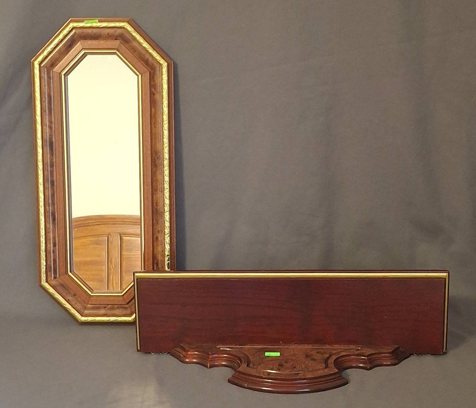 200 Octagonal Wall Mirror with Gold-Tone Accent and Matching Mahogany Display Shelf 8?x18? & 17?x5?