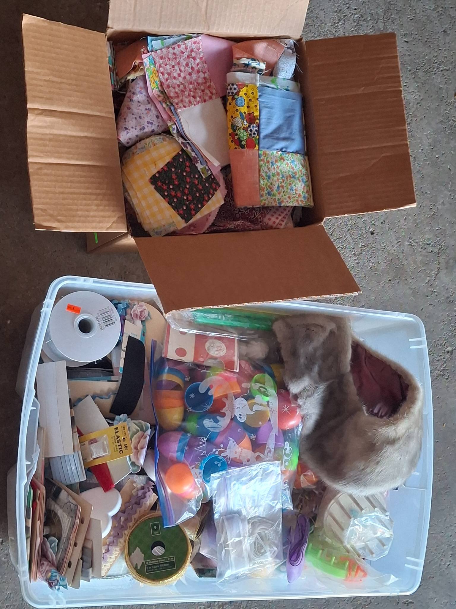 2001 Fabric Pieces and Craft Supplies in Storage Containers