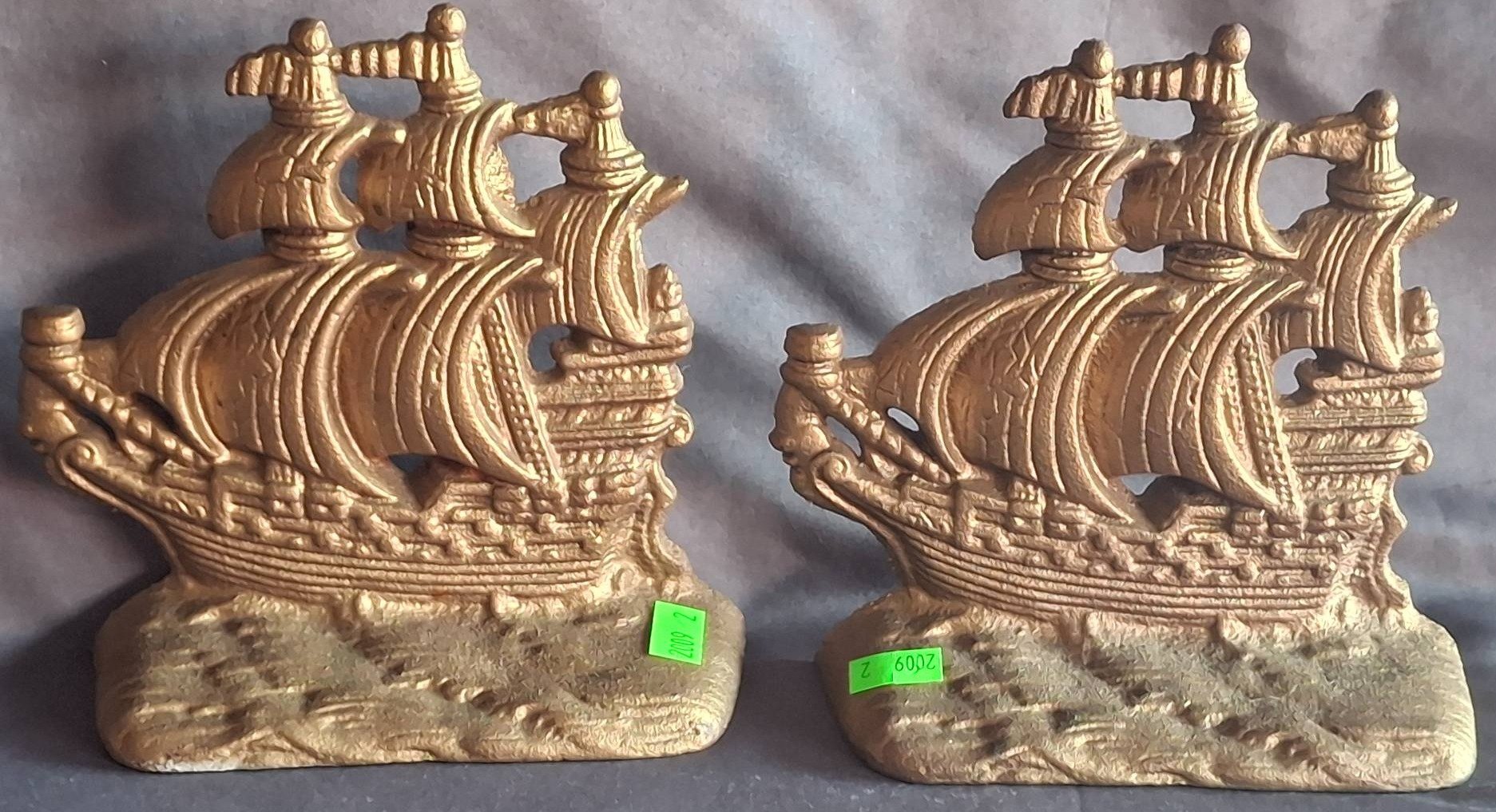 2009 Cast Iron Ship-Shaped Bookends with Gold-Tone Finish 6?x5.5?