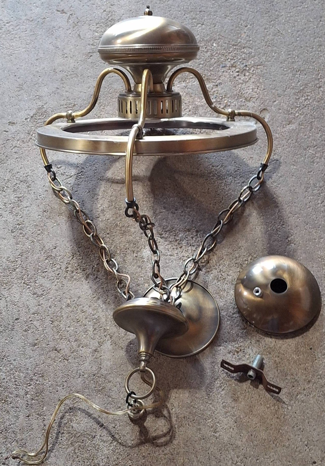 2018 Brass Hanging Light Fixture with Chain and Dome Features 22? Lgth.