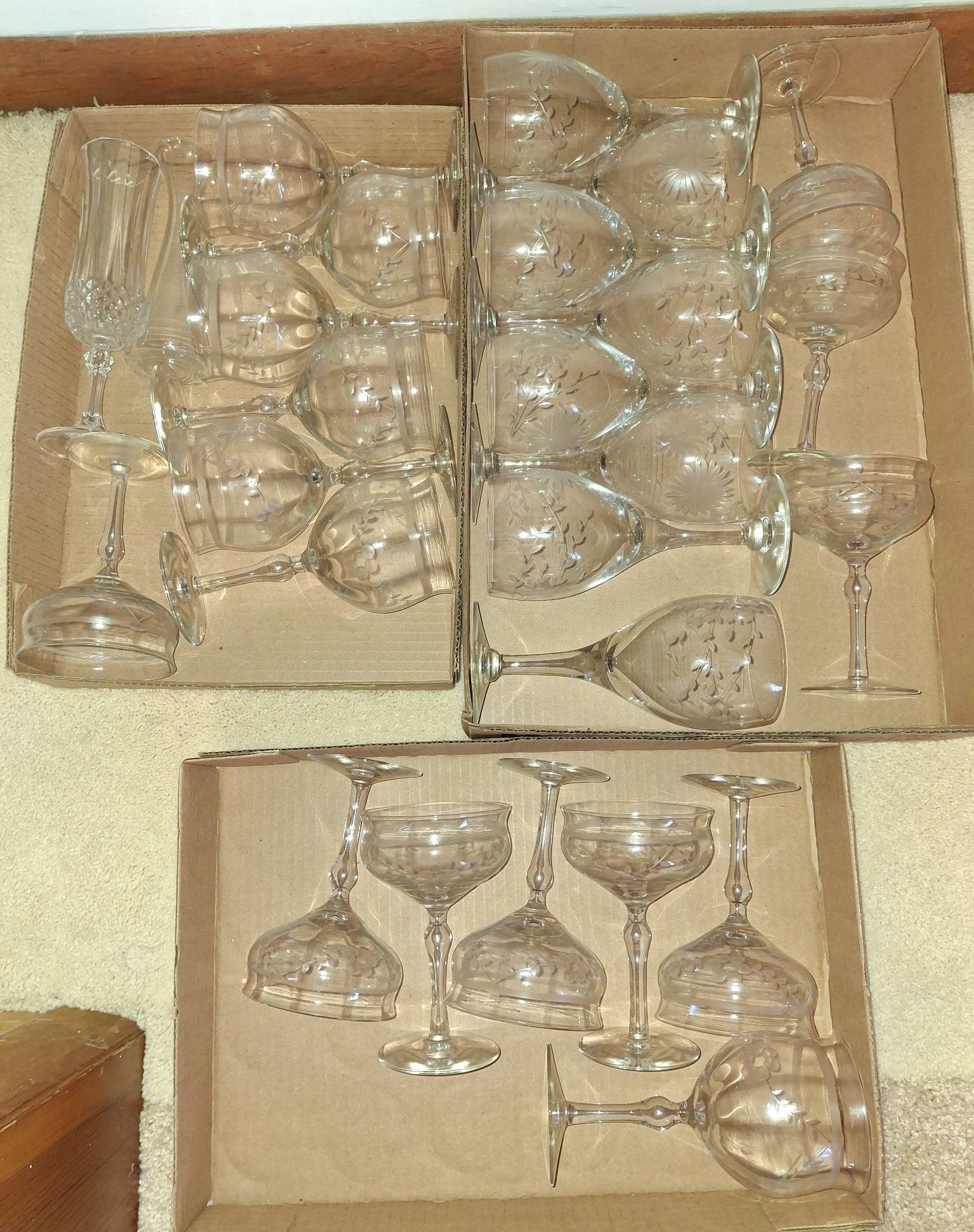 202 25 – Clear Etched & Cut Crystal Stemmed Glasses 5.5?-9?