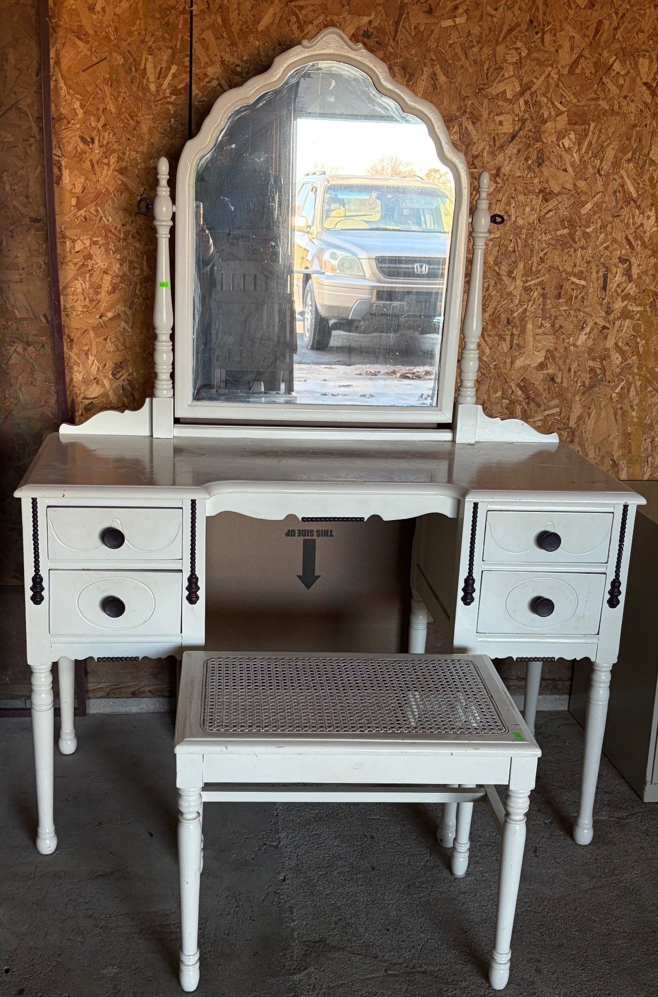 2025 Vanity Table w/ Mirror and Bench, Painted Finish, 46”x18”x63”