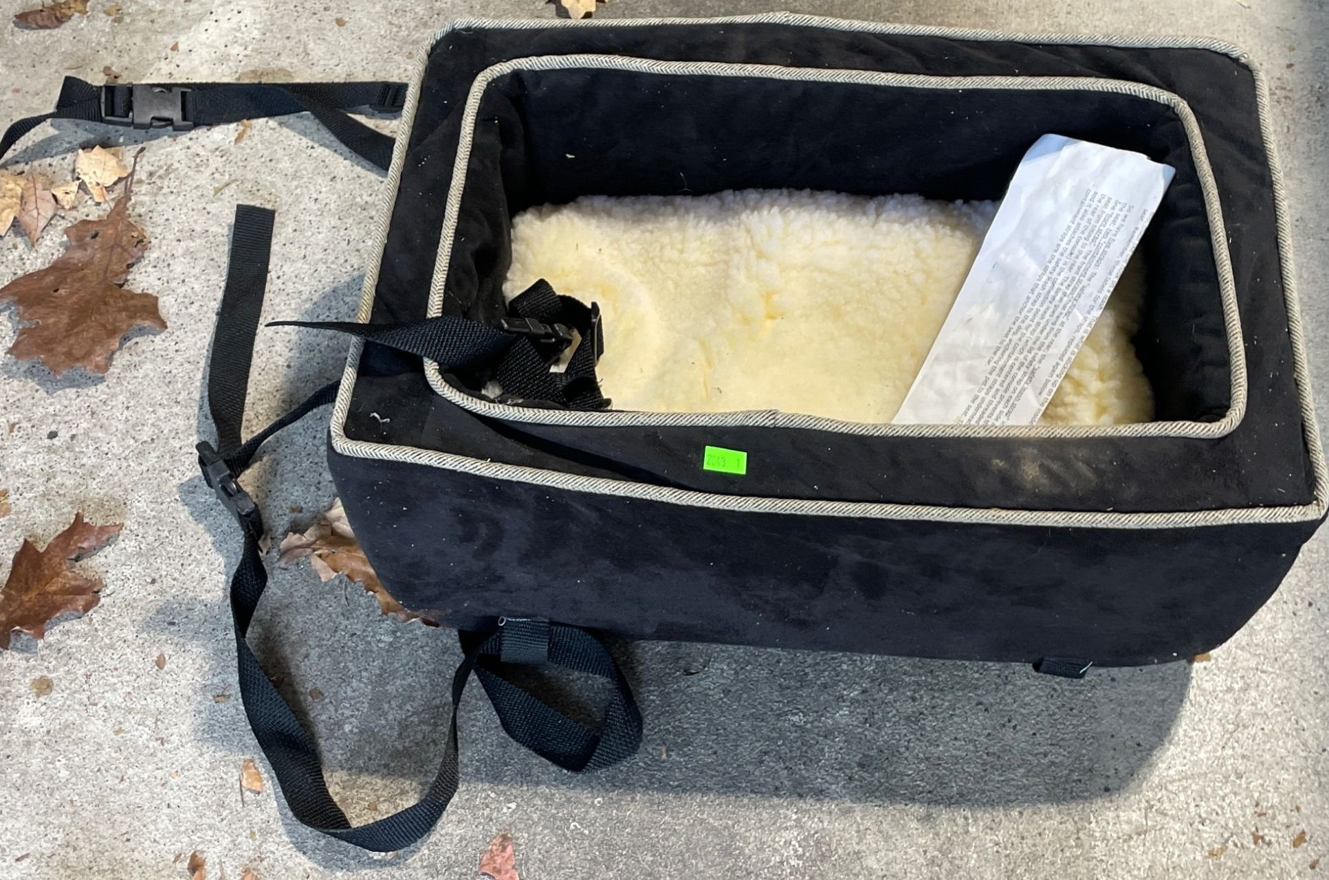 2043 Black Pet Carrier with Sheepskin-Style Lining and Shoulder Straps 18”x12”x8”