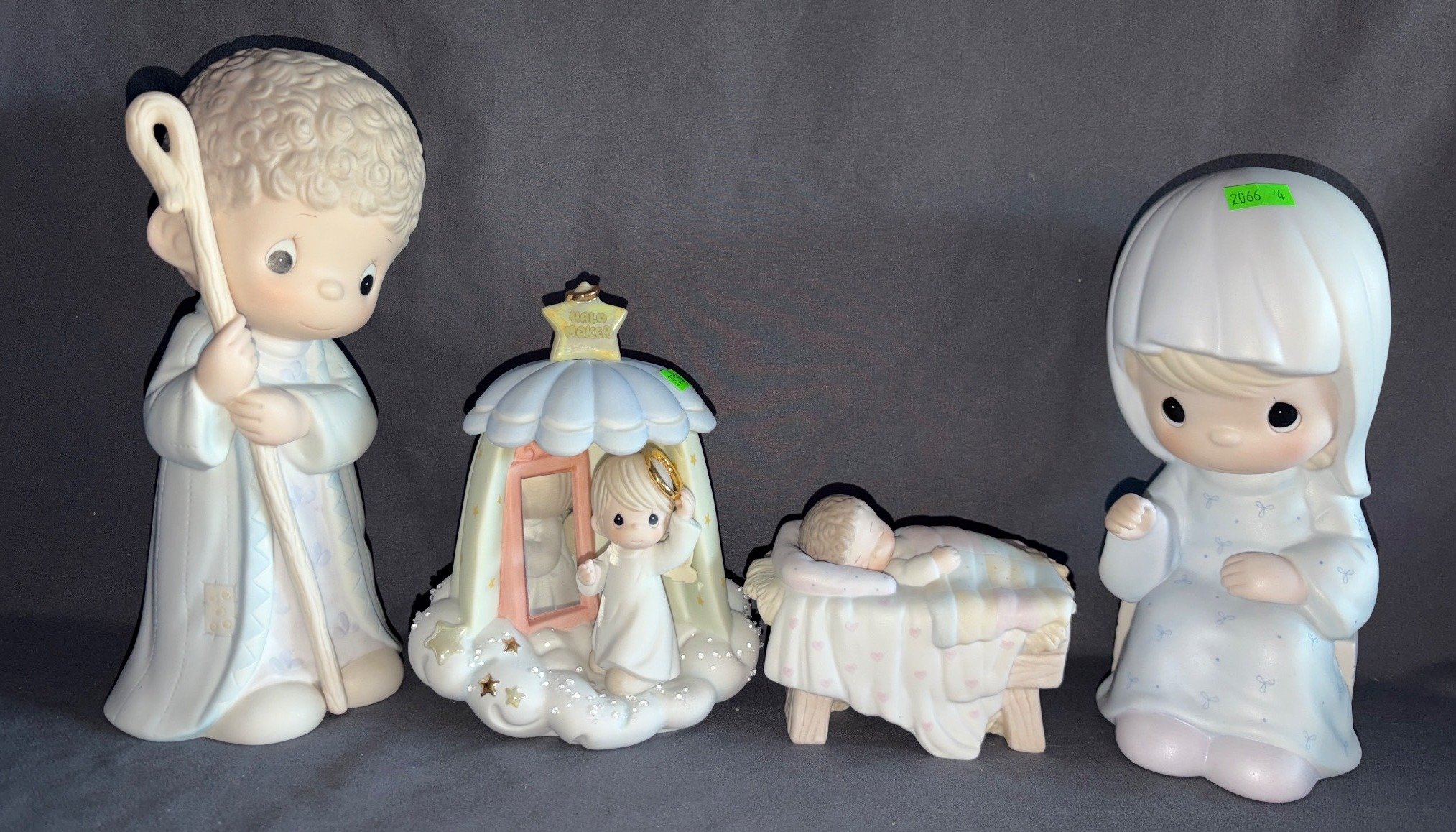 2066 Porcelain Nativity Figurines by Precious Moments, 4 Pieces, 3”-9.5”H