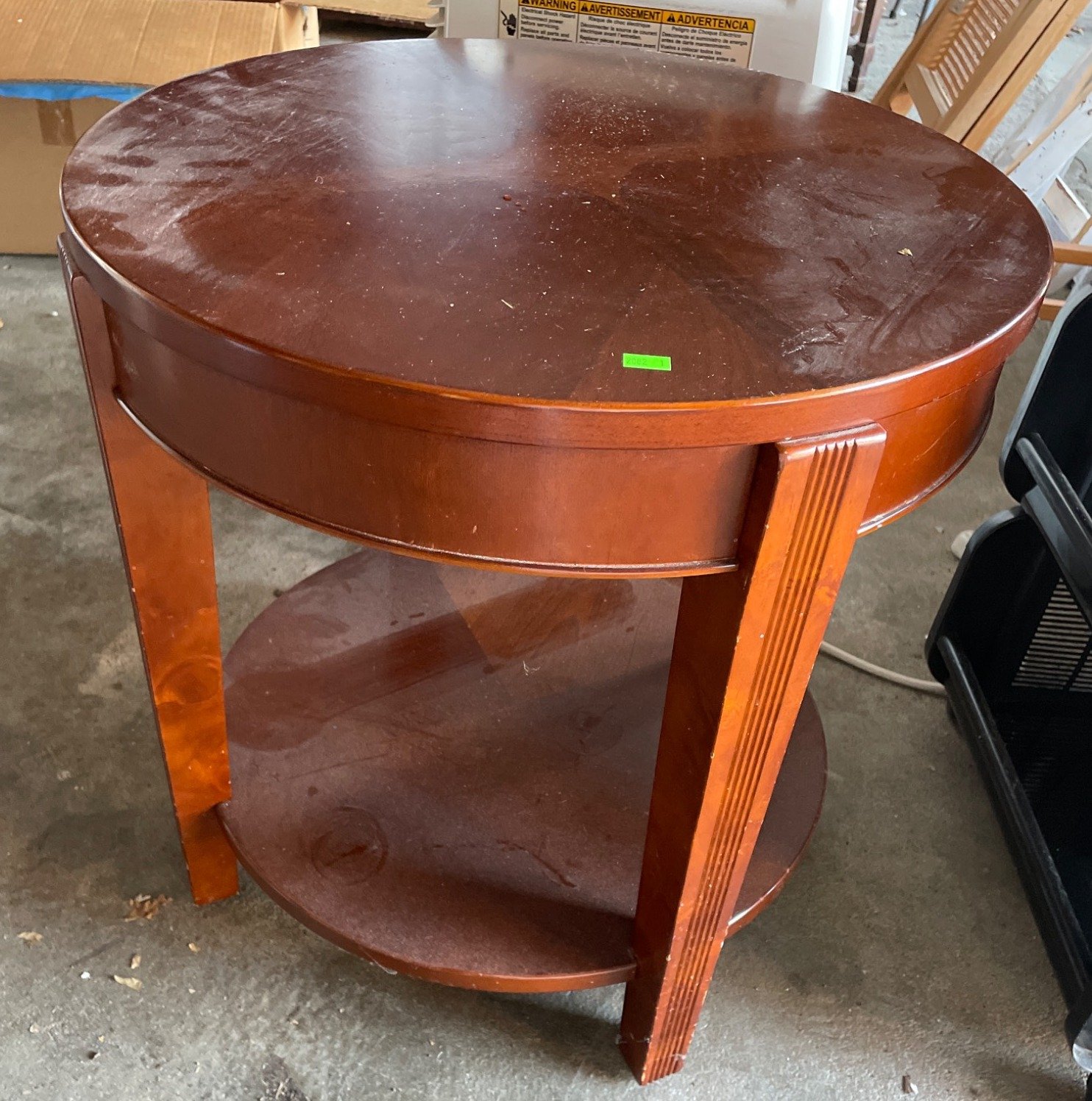 2082 Round Two-Tier Mahogany-Finished Side Table 22”x22”