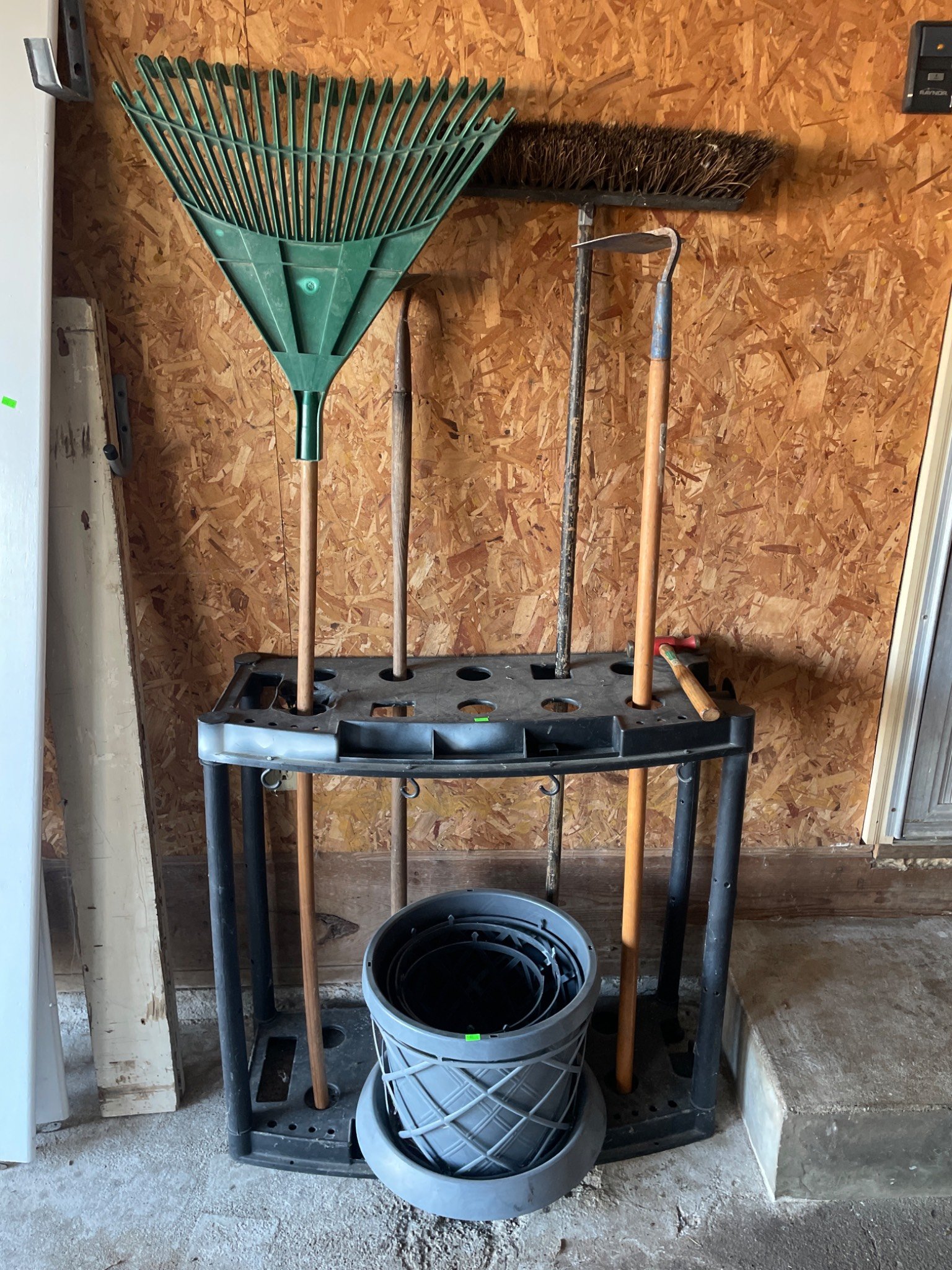 2091 Yard Tools Inc Rake, Hoe, Broom and Flower Pots