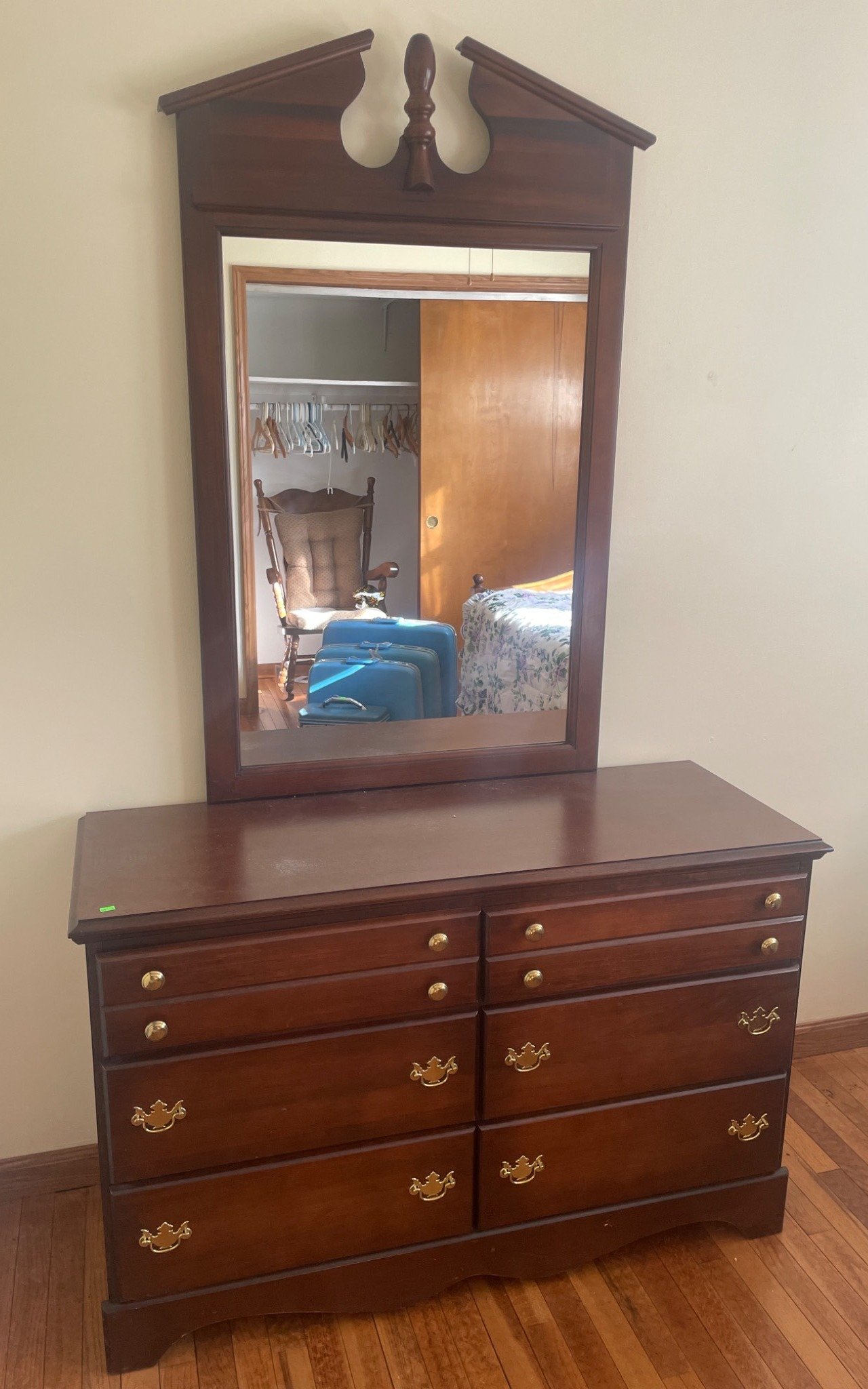 310 Carolina Furniture Dresser with Mirror and Brass Hardware 48”x18”x76”