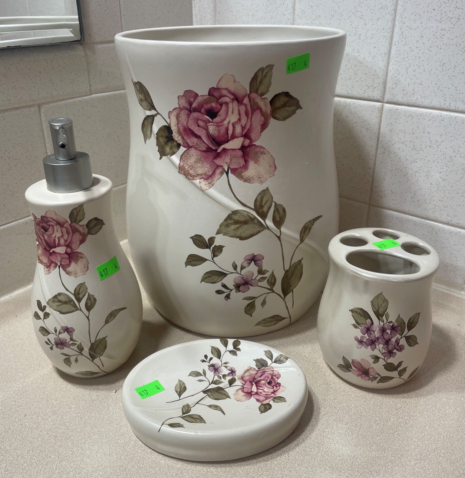 417 Floral Bathroom Accessories Inc. Wastebasket, Soap Dispenser & More 5”-10”