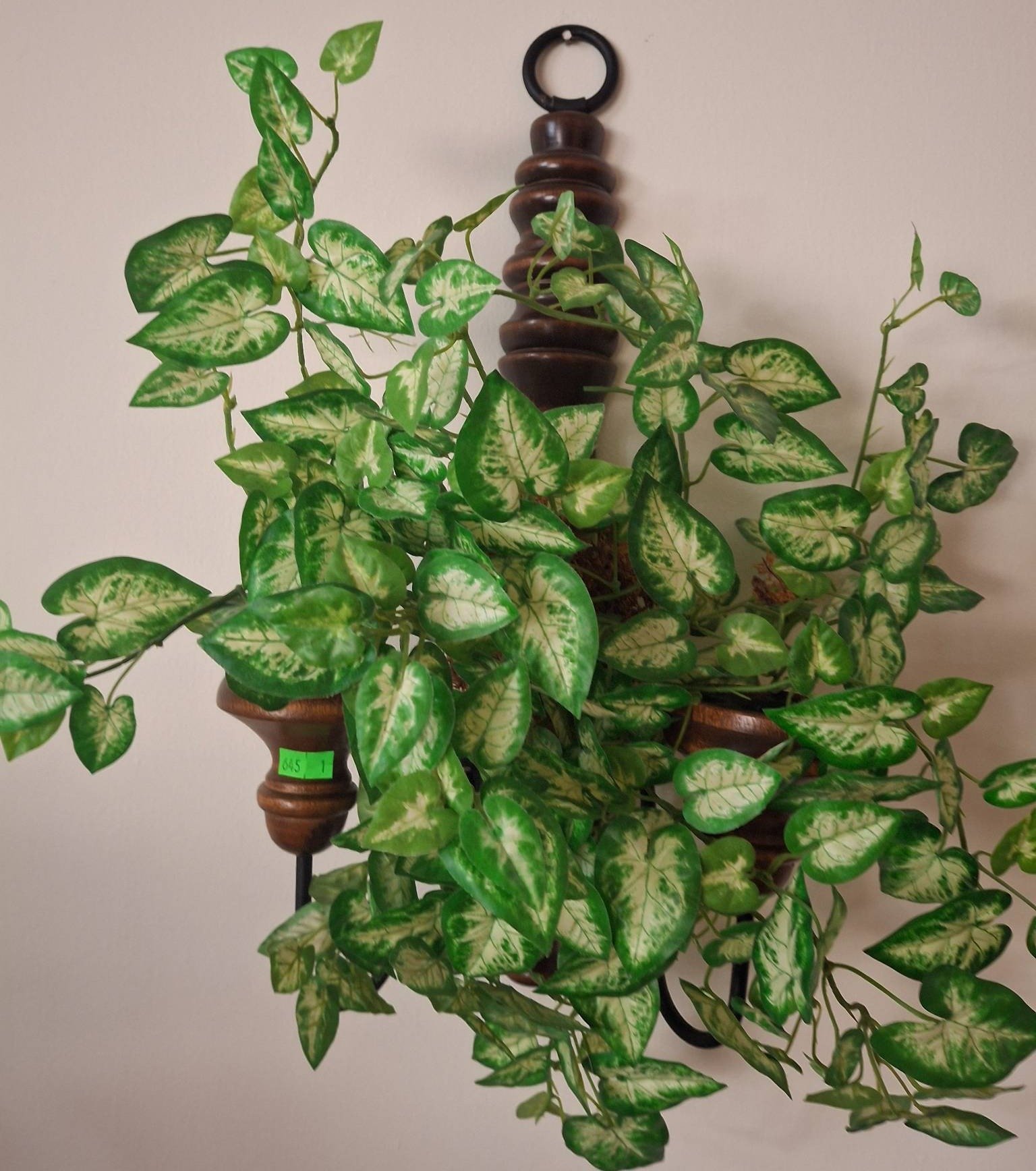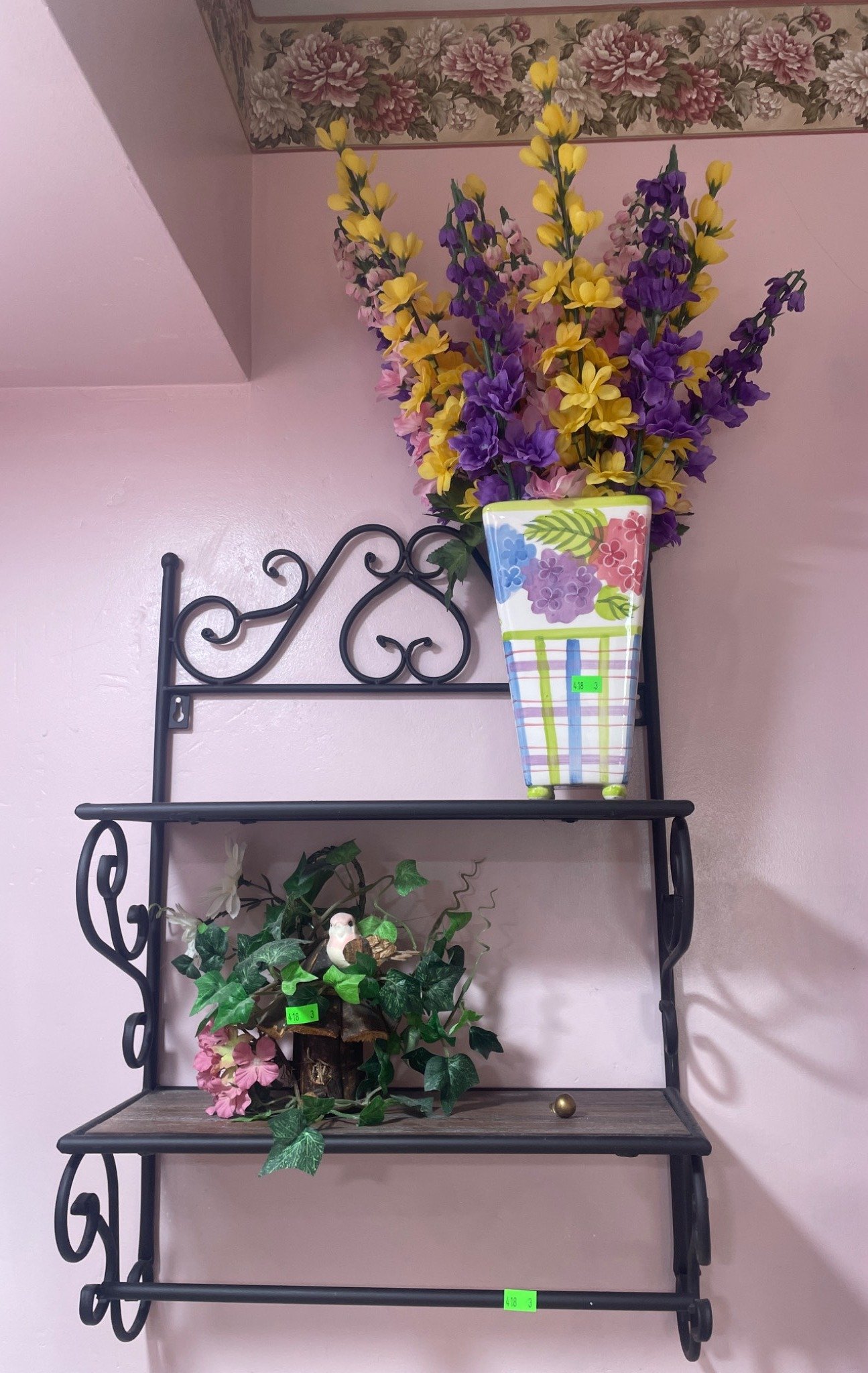 418 Metal Wall Shelf with Faux Plant Decor and Floral Vase 15”x6”x23”, 7”,8”
