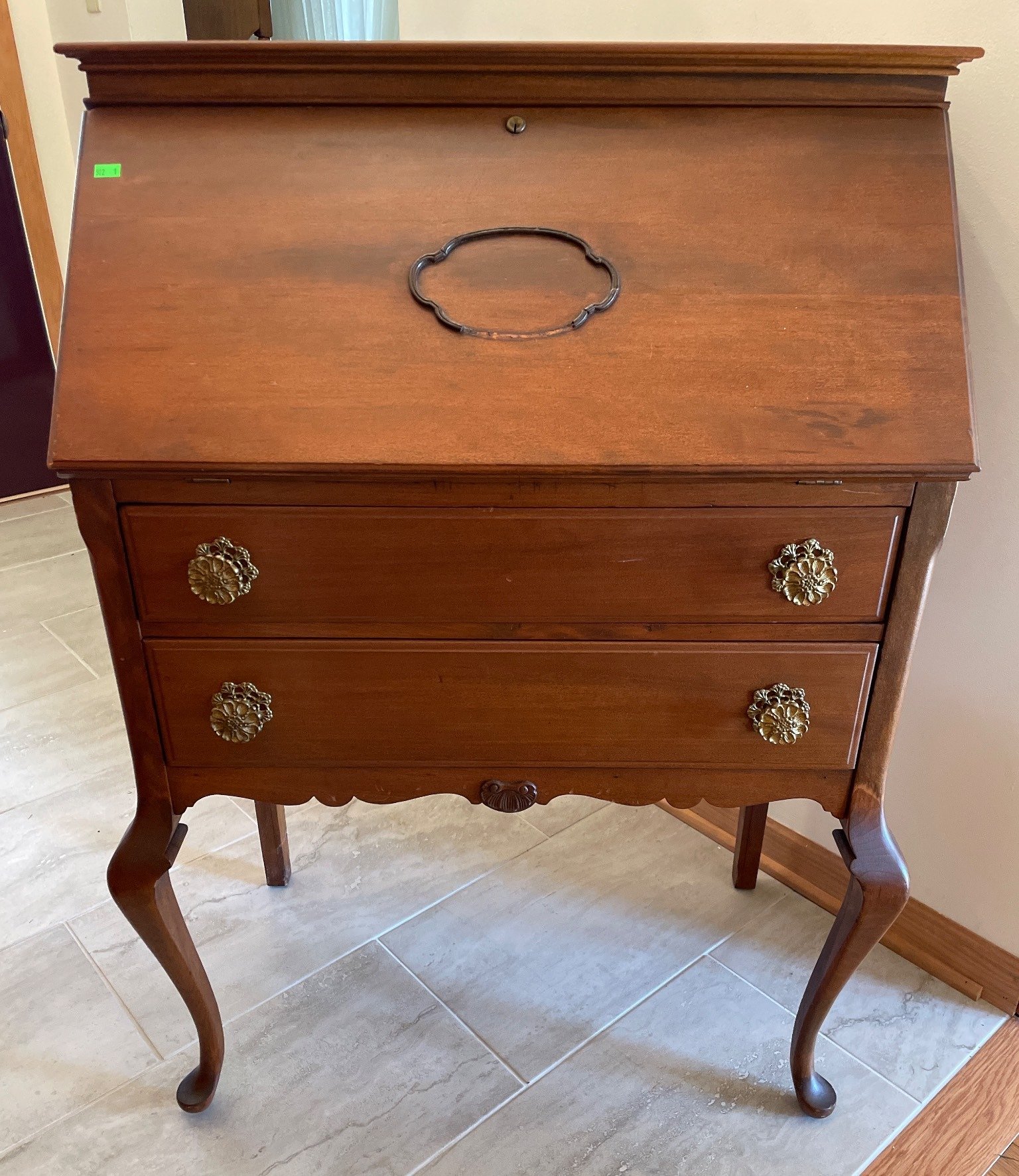502 Drop-Front Secretary Desk with Brass Hardware, 15”Wx28”Lx39.5”H