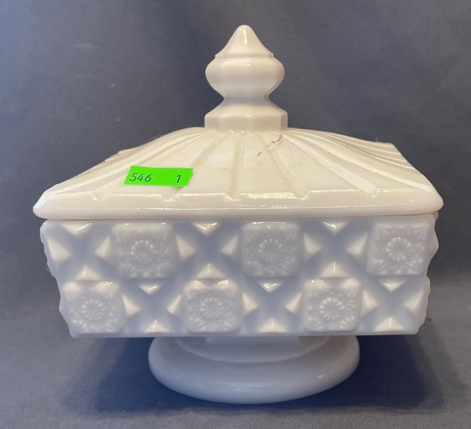 211 Fenton Milk Glass Hobnail Compote with Ruffled Edge 6.5?x5.5?