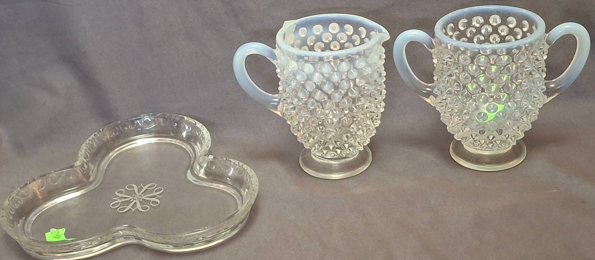 215 Fenton Hobnail Milk Glass Ruffled Fluted Ashtray, 8?