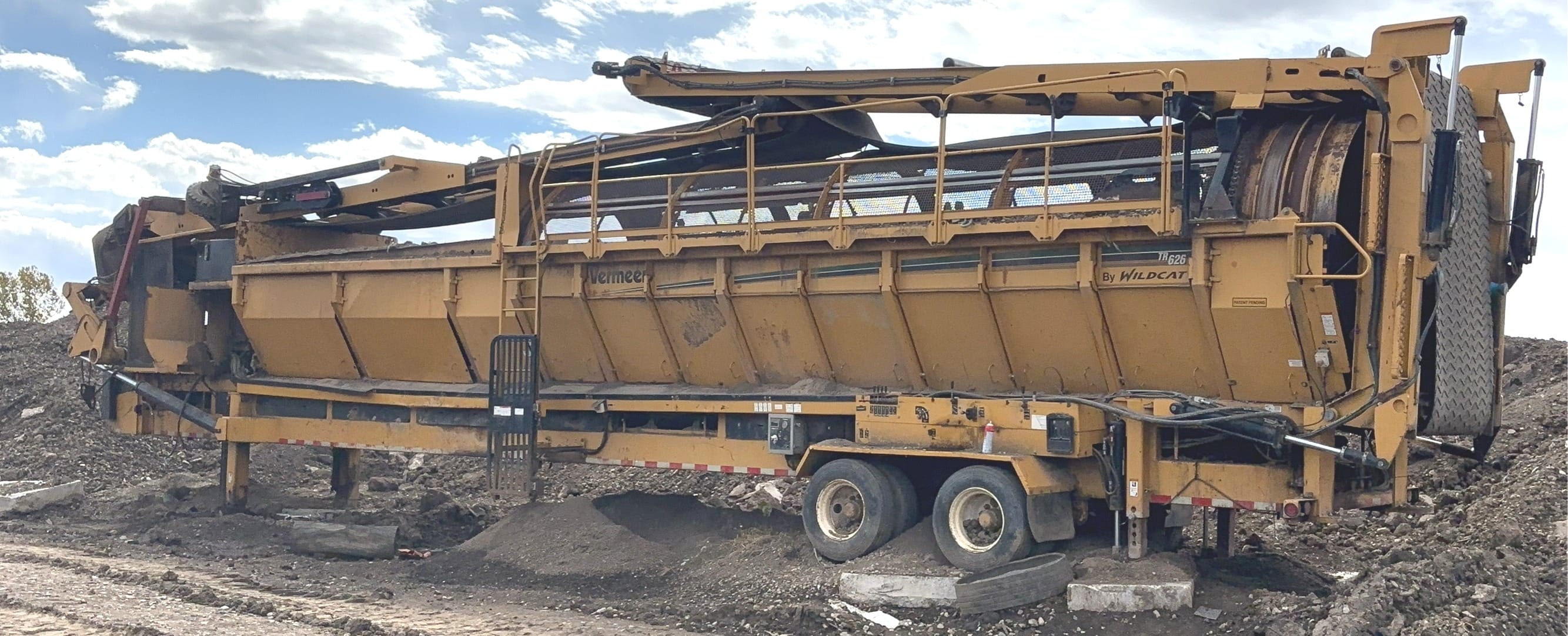 6876 2010 Vermeer (By Wildcat)TR626 trommel screen, 6 ft diameter drum, 6 cu yd hopper, 125 hp John Deere 4045 Tier 4 Final engine, approximately 49,700 lbs. $36,000 in new parts and repairs 2024 (New screens, brushes, welded the barrel and bolts) $18,000 in repairs 2025 on main belt and new head drum. (Currently needs main belt and pulley repair) - PICK UP ALTERNATE LOCATION INDIANAPOLIS INDIANA