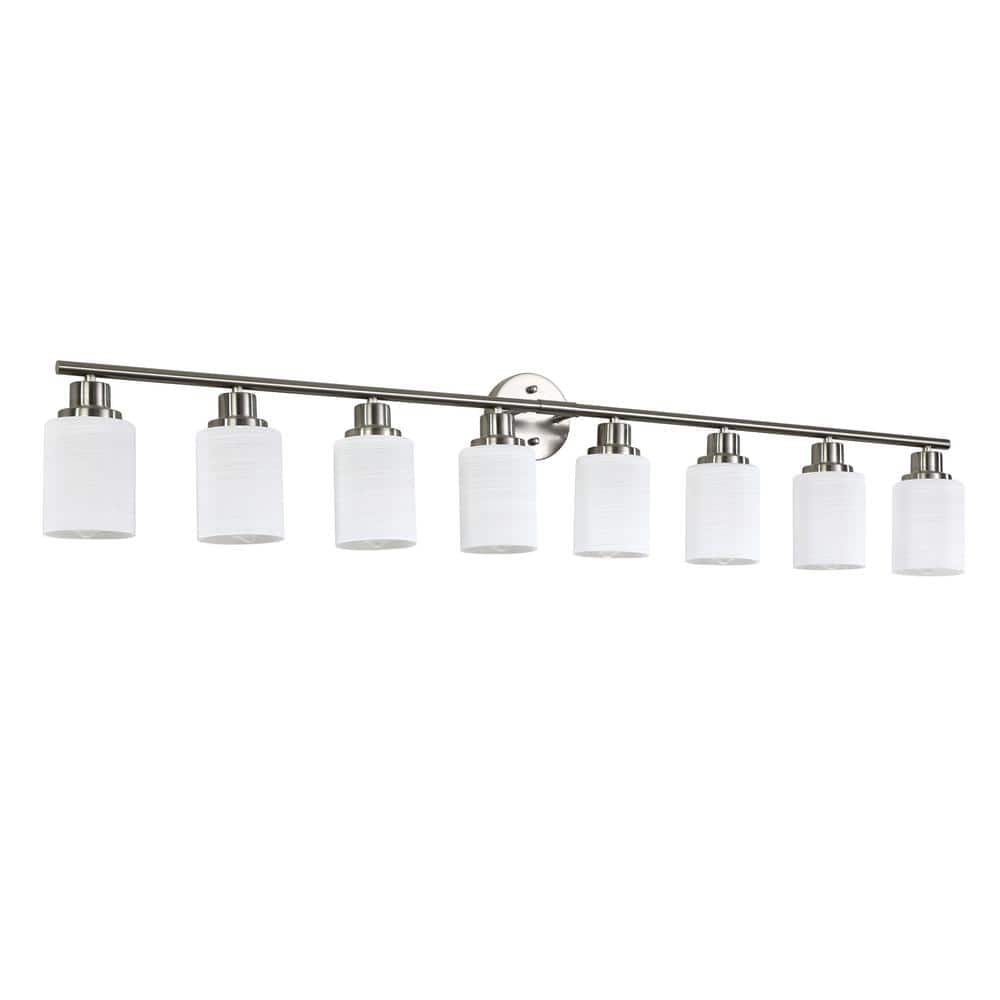 601061 HKMGT - 52 in. 8-Light Chrome Vanity Light with White Glass Shade