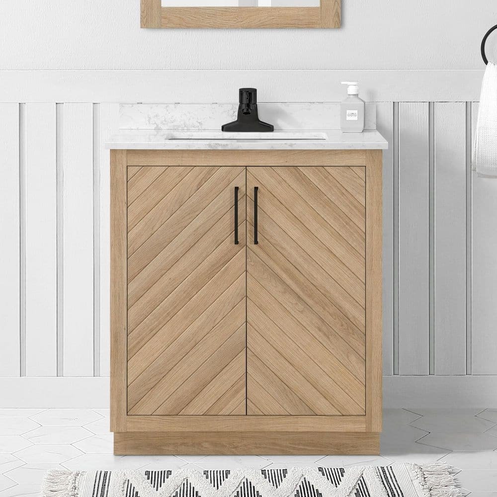 601020 GLACIER BAY - Huckleberry 30 in. Single Sink Weathered Tan Bath Vanity with White Engineered Marble Top (Assembled)
