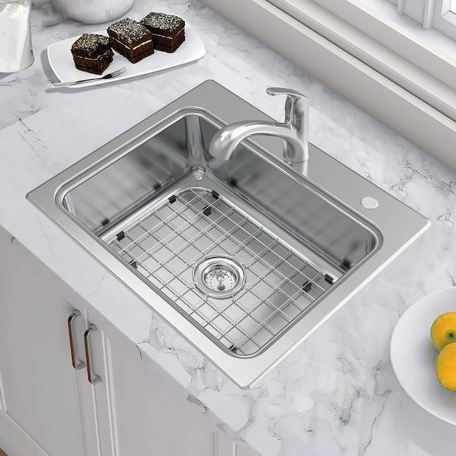 601035 ALLEN + ROTH - allen + roth Hoffman Drop-in or undermount 25-in x 22-in Stainless steel Single bowl 20 -Gauge Kitchen Sink All-in-One Kit