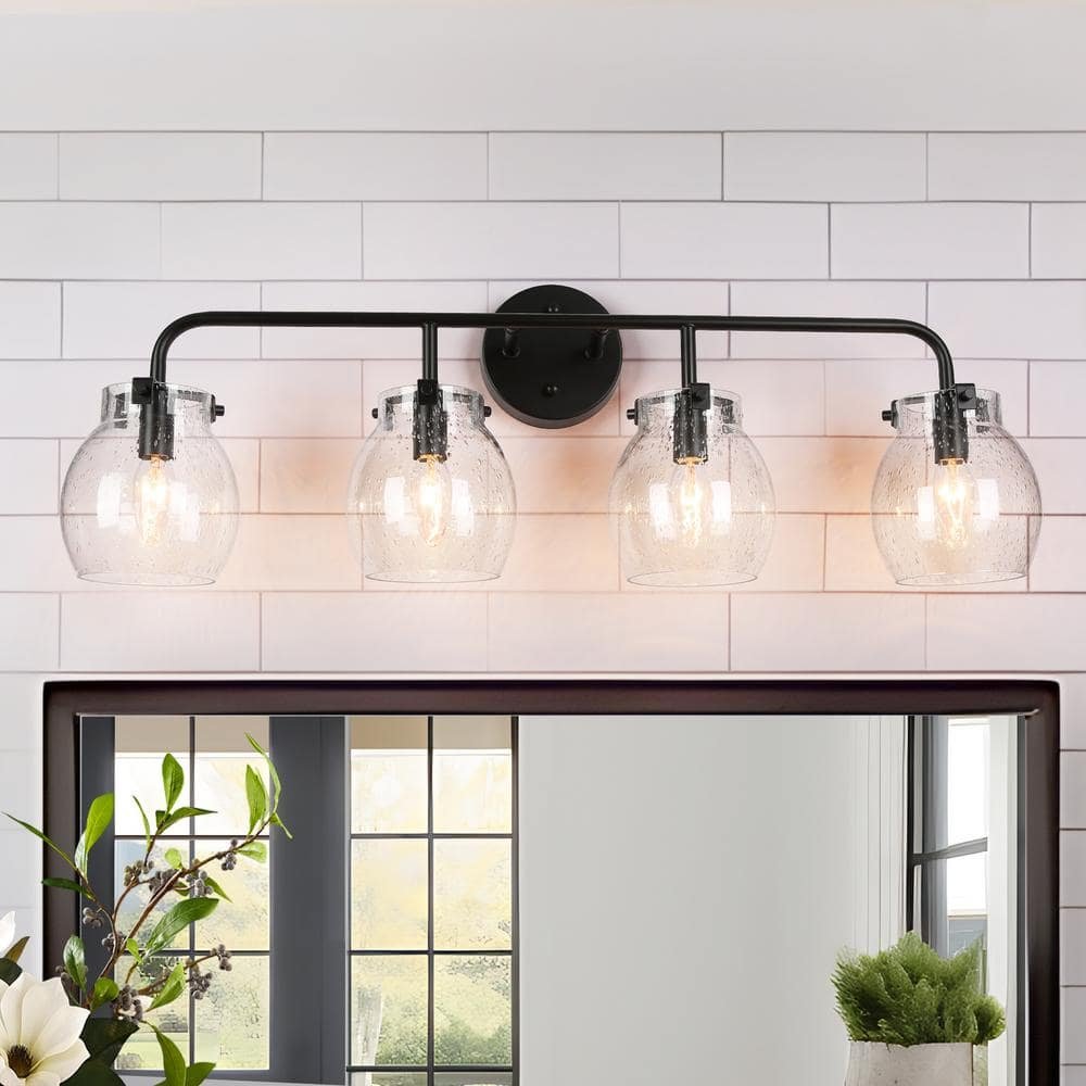 601070 LNC - Painted Black Vanity Light 29 in. 4-Light Modern Black Bathroom Wall Sconce Classic Wall Light with Seedy Glass Globes