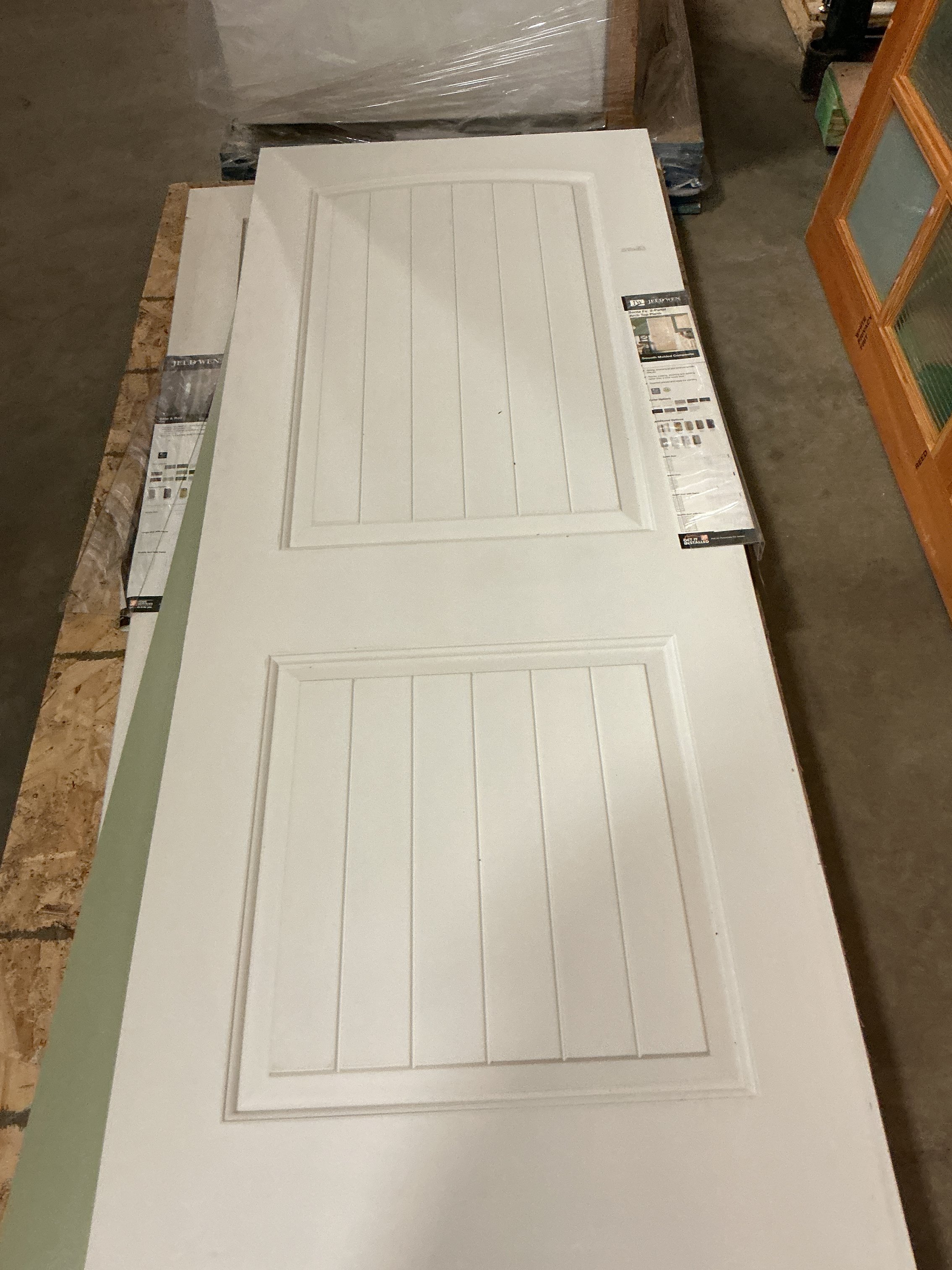 601076 JELD WEN - Santa Fe 2 panel arch tip plank door slab. 30x80in brilliant white - SEE PRODUCT DETAILS
