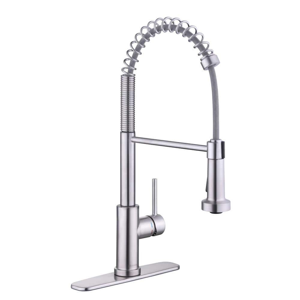 601080 GLACIER BAY - Paulina Single-Handle Spring Neck Pull Down Sprayer Kitchen Faucet in Stainless Steel