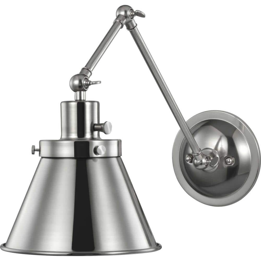 601084 PROGRESS LIGHTING - Hinton Collection 1-Light Brushed Nickel Swing Arm Adjustable Coastal Farmhouse Wall Light Sconce