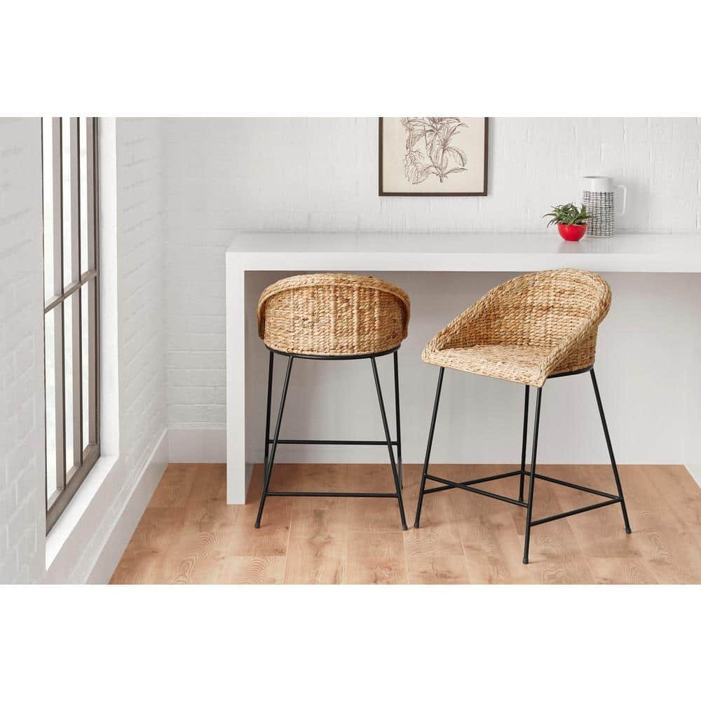 601085 STYLEWELL - 24 in. Natural Woven Hyacinth Counter Stool with Low Back
